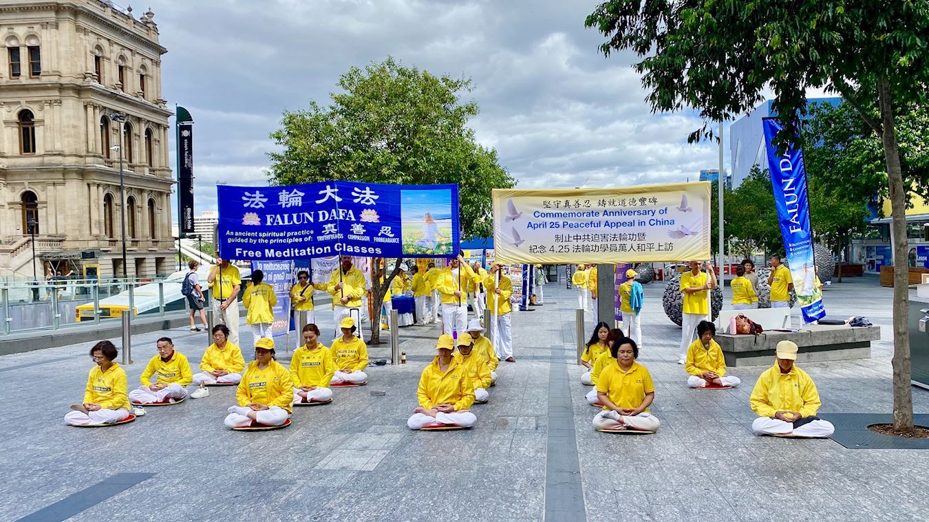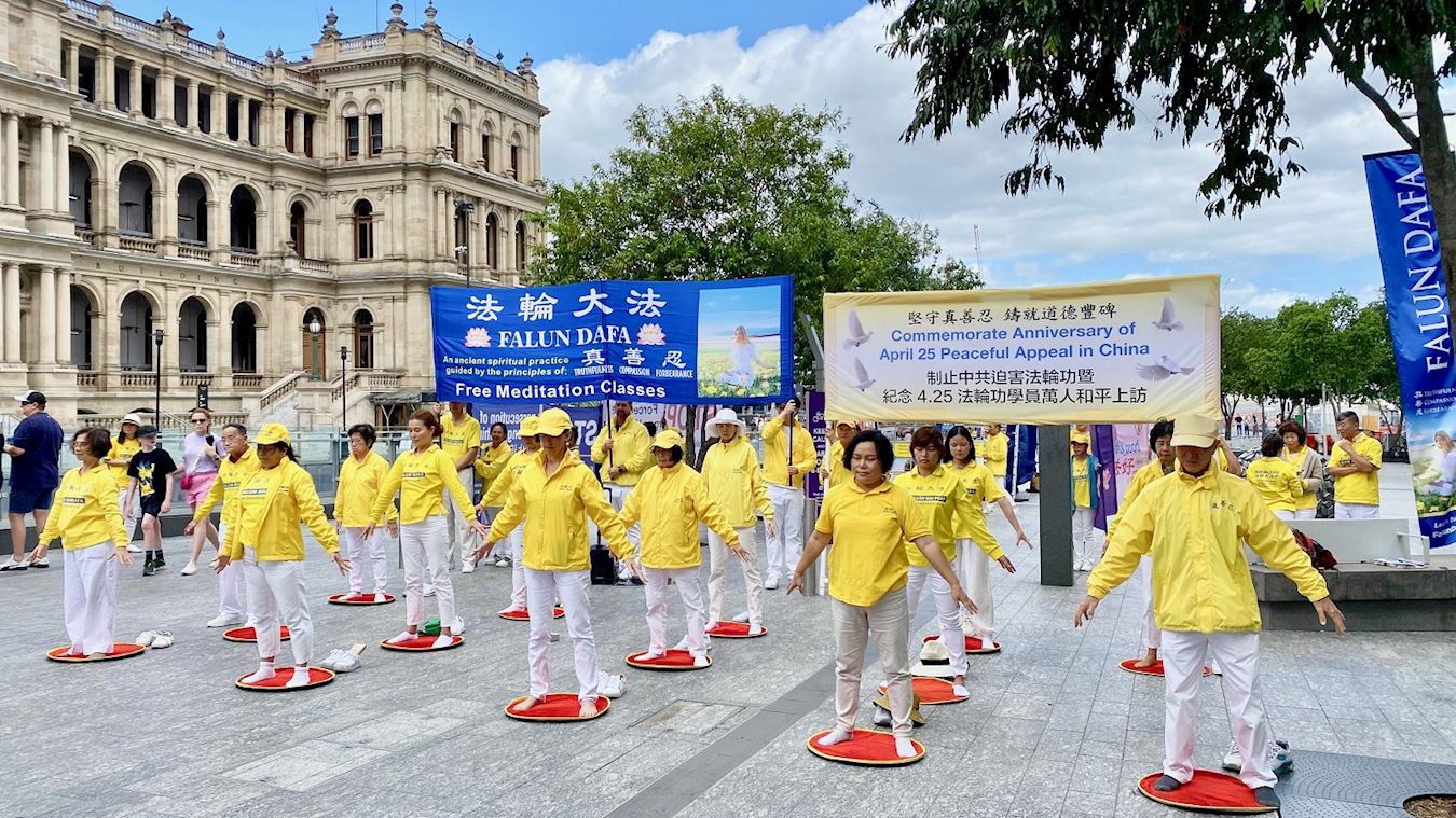 ![]() 图1~3:二零二三年四月二十二日,昆士兰法轮功学员在布里斯班市中心布里斯班广场(Brisbane Square)举办活动,纪念“四·二五”和平上访二十四周年,学员们在集体炼功。 |