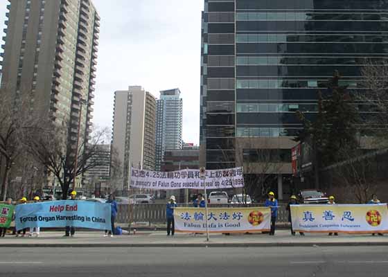纪念四·二五 加国卡城法轮功呼吁民众认清中共