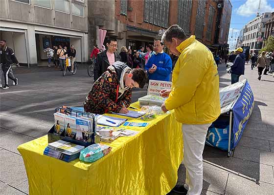 荷兰法轮大法学员4月25日在海牙纪念“四·二五”和平上访。过往民众在得知中共对法轮功的迫害后,纷纷对法轮功学员表示支持和感谢。