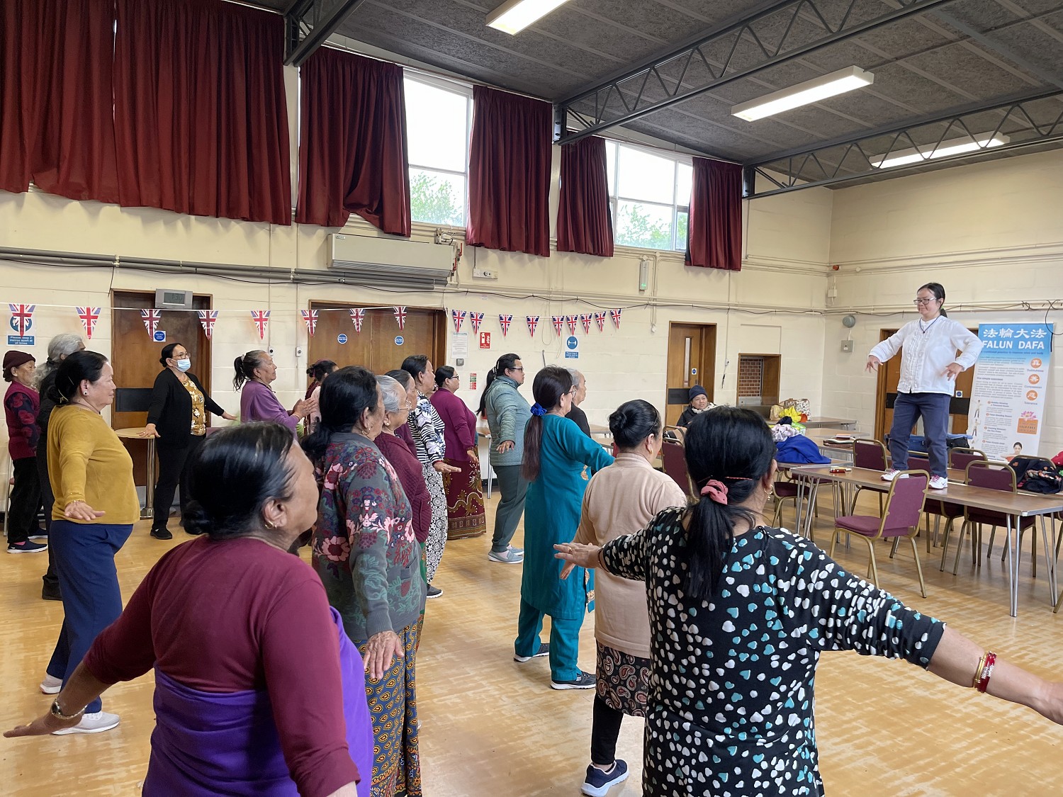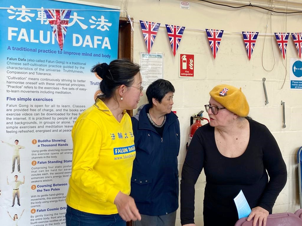 【明慧网二零二三年五月十二日】英国新国王于二零二三年五月六日举行登基加冕仪式。五月八日,英国法轮功学员应邀在东伦敦的格林登小区中心 (Glyndon Community Centre)参加午餐会,展示法轮功的五套功法。