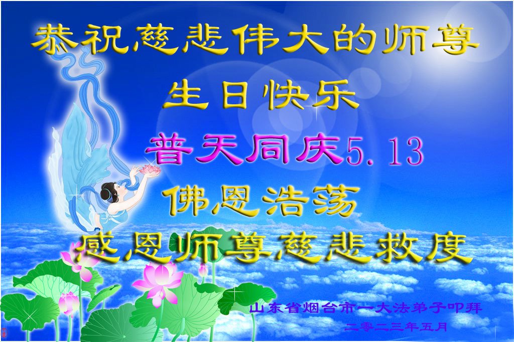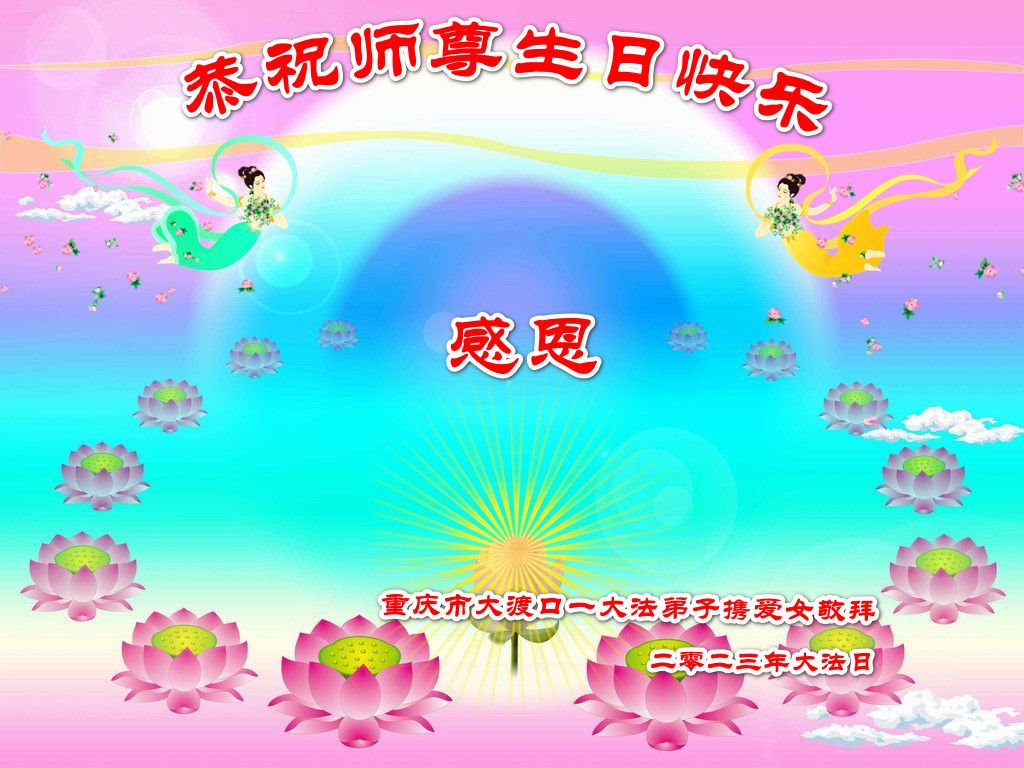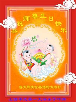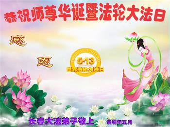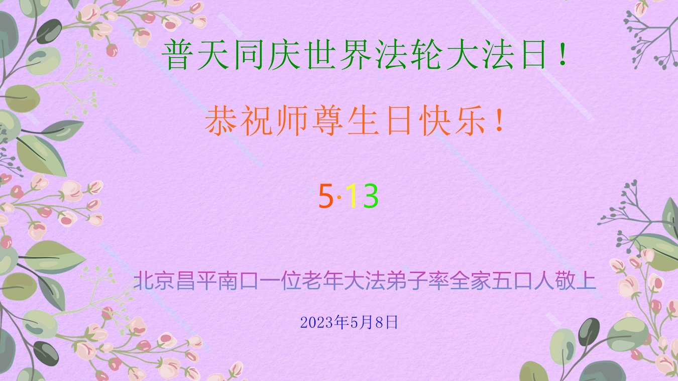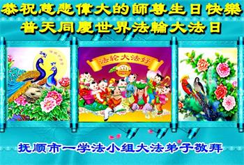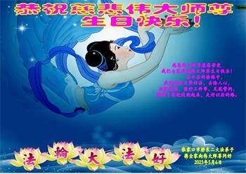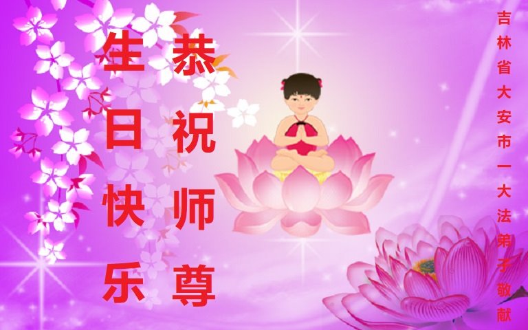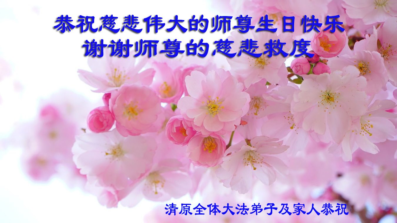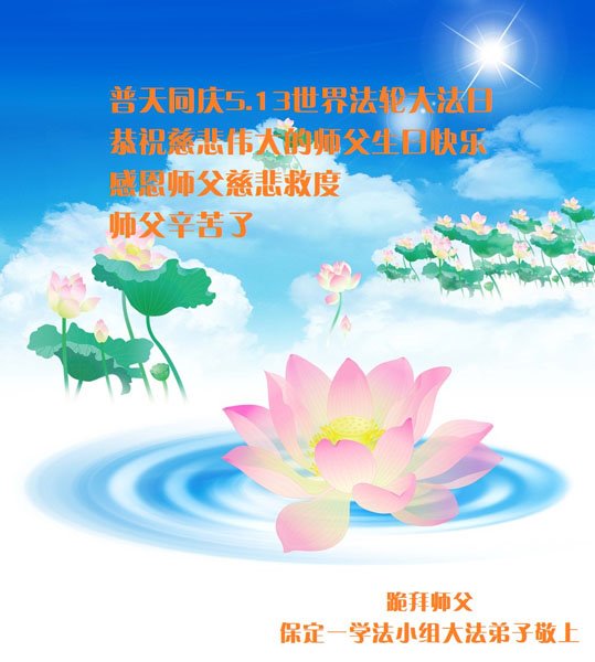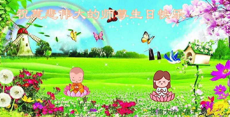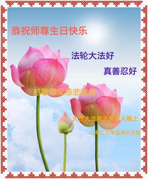 在我们恭祝师父生日和欢庆世界法轮大法日的喜庆时刻,我们心里充满了对师父的无限感恩!慈悲伟大的师父好!恭祝师父生日快乐!