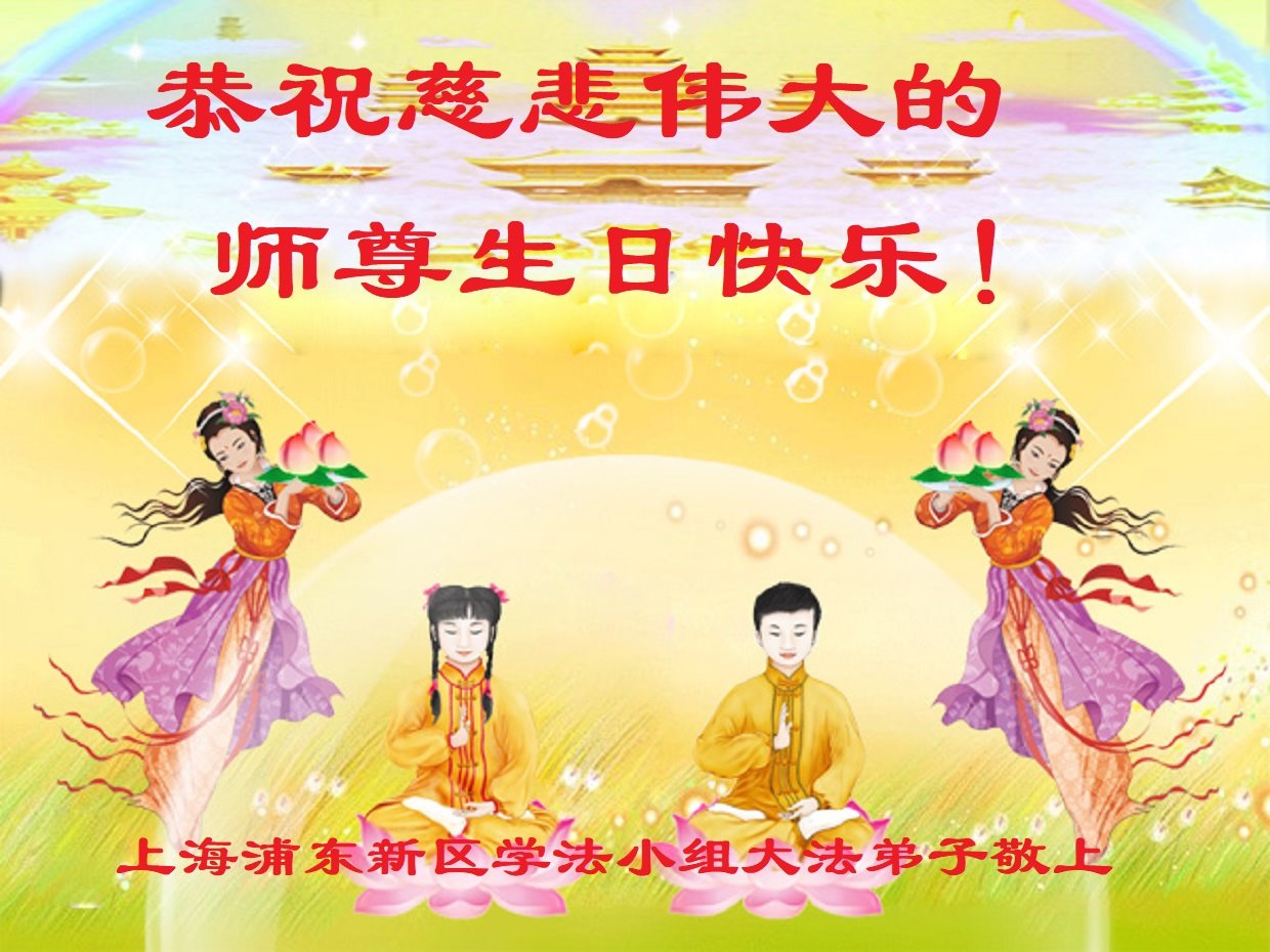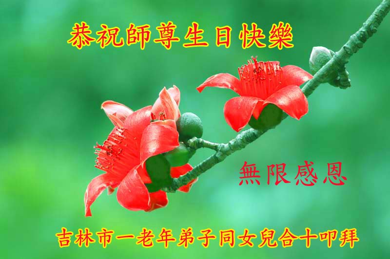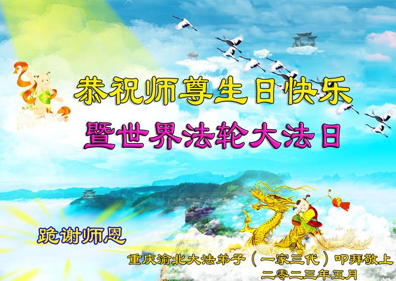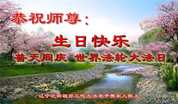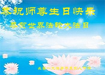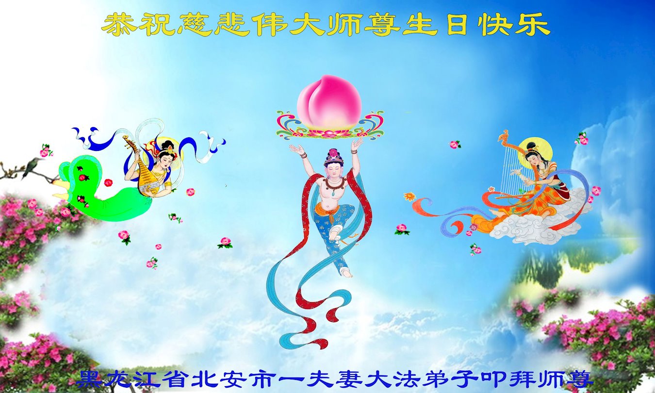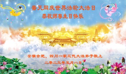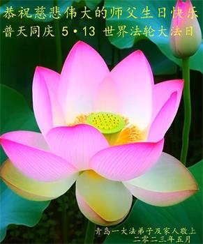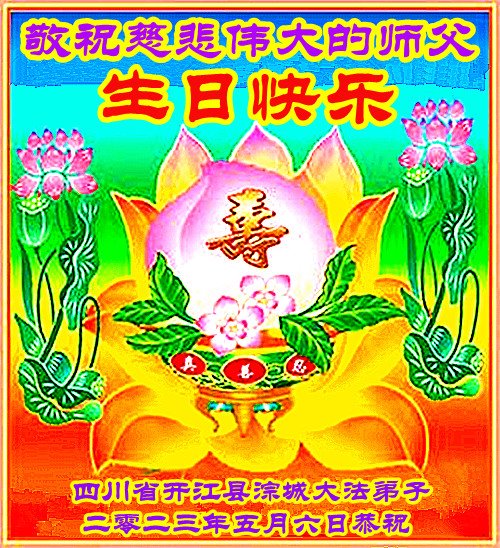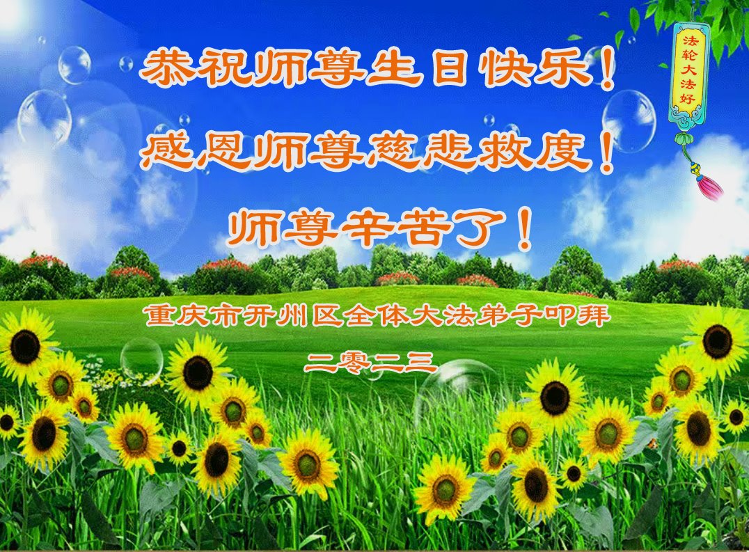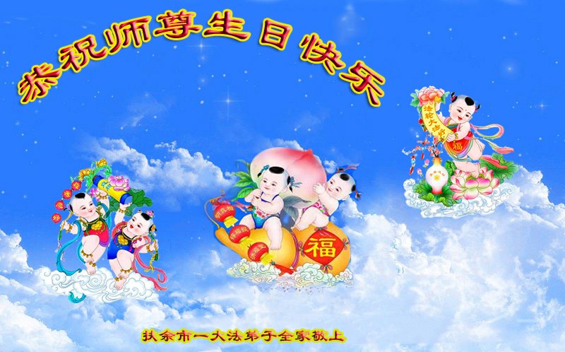 在我们恭祝师父生日和欢庆世界法轮大法日的喜庆时刻,我们心里充满了对师父的无限感恩!慈悲伟大的师父好!恭祝师父生日快乐!