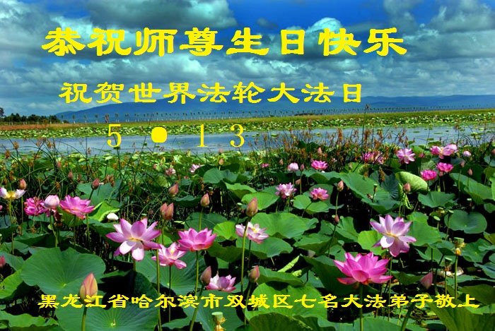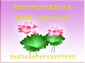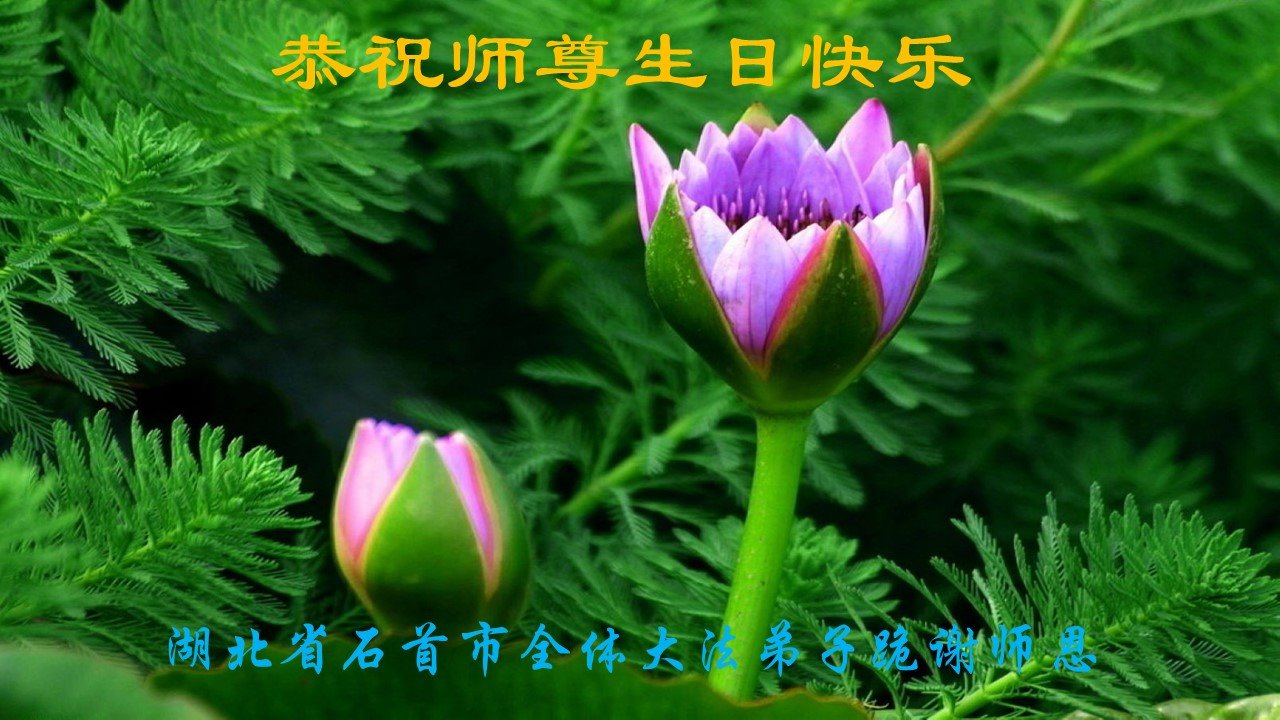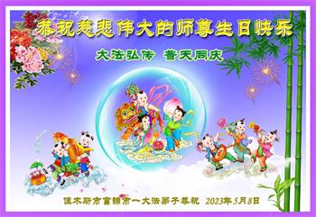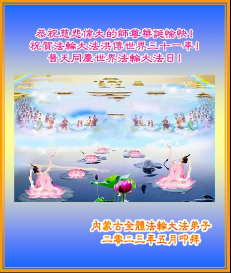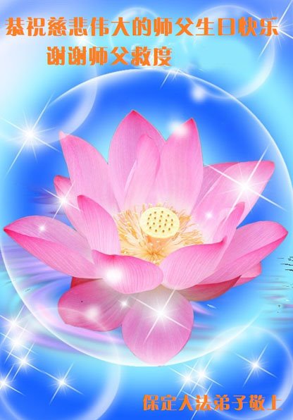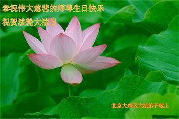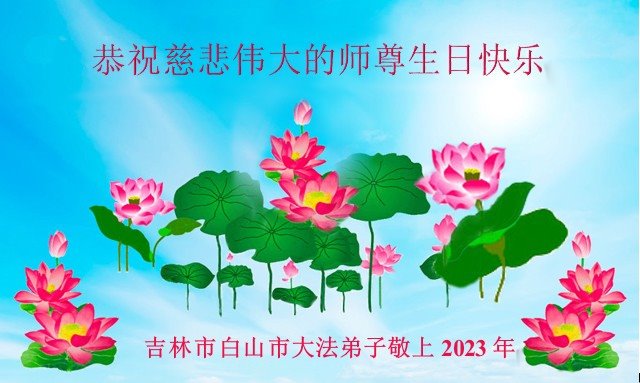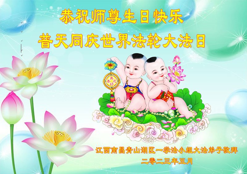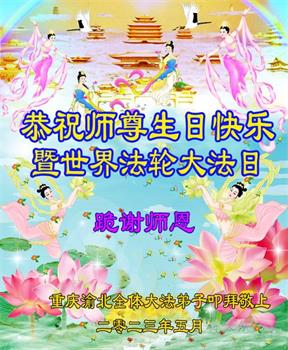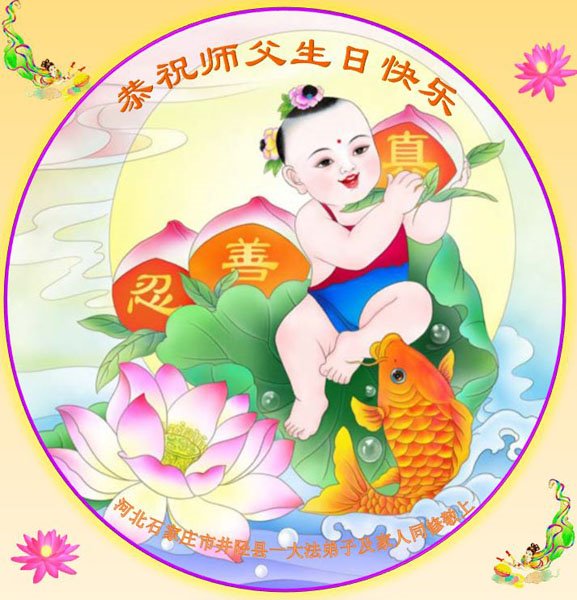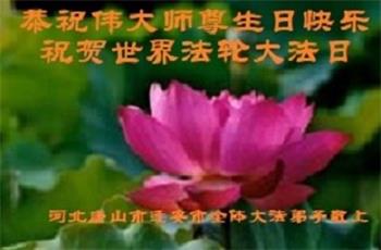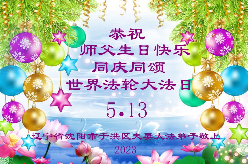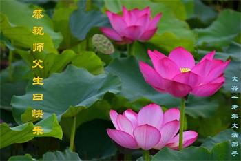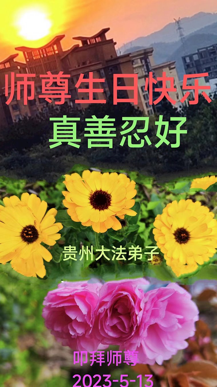 在我们恭祝师父生日和欢庆世界法轮大法日的喜庆时刻,我们心里充满了对师父的无限感恩!慈悲伟大的师父好!恭祝师父生日快乐!