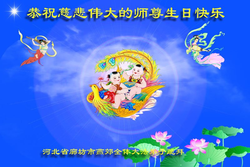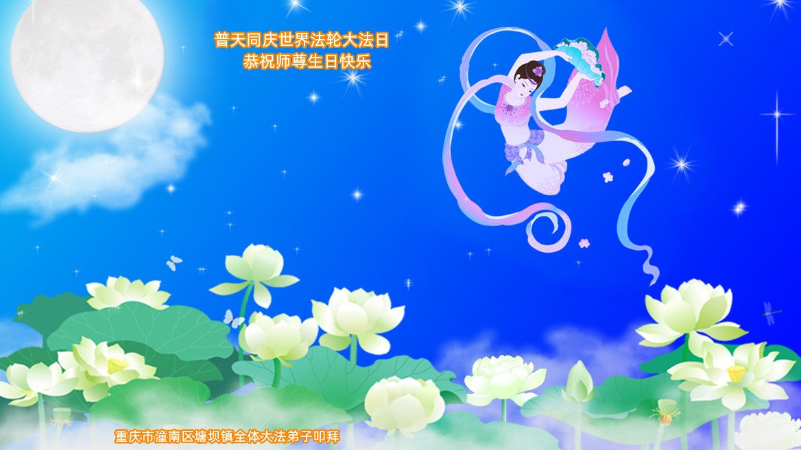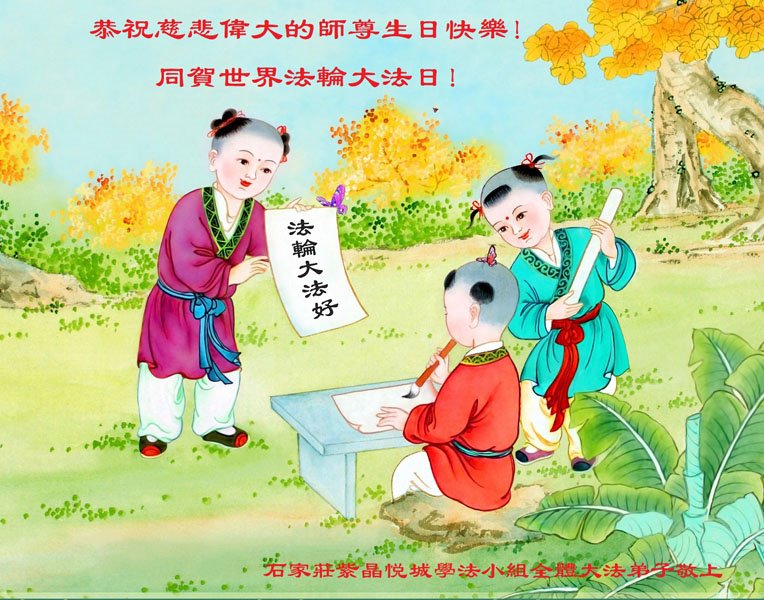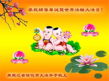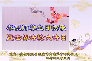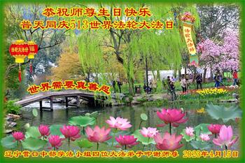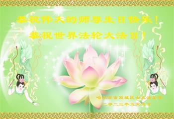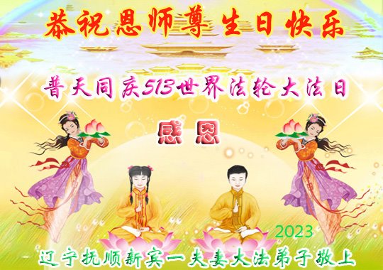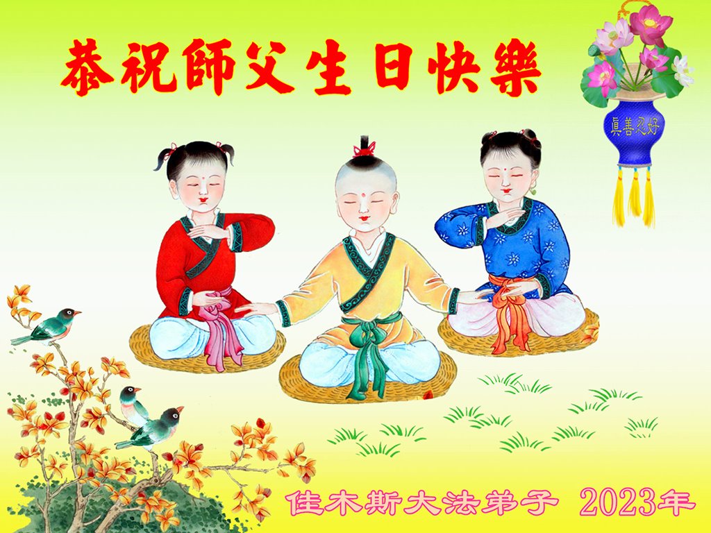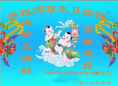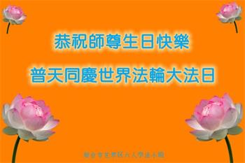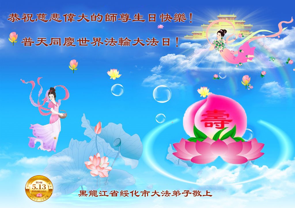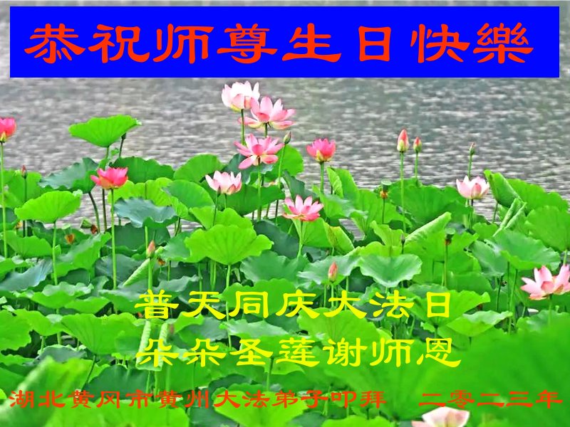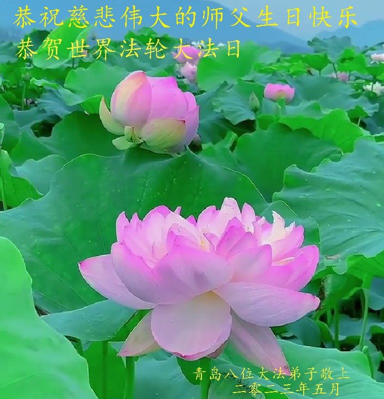 在我们恭祝师父生日和欢庆世界法轮大法日的喜庆时刻,我们心里充满了对师父的无限感恩!慈悲伟大的师父好!恭祝师父生日快乐!