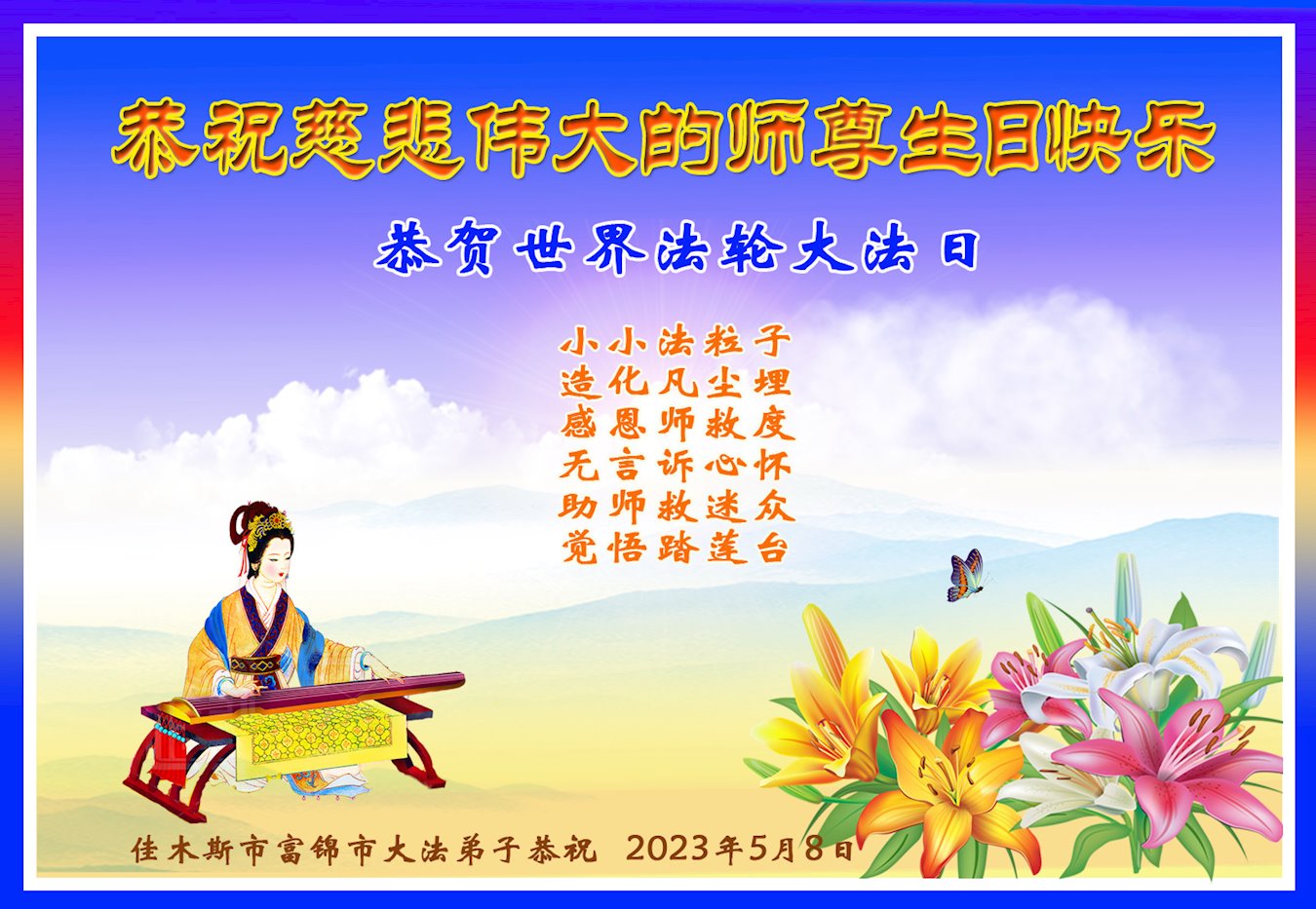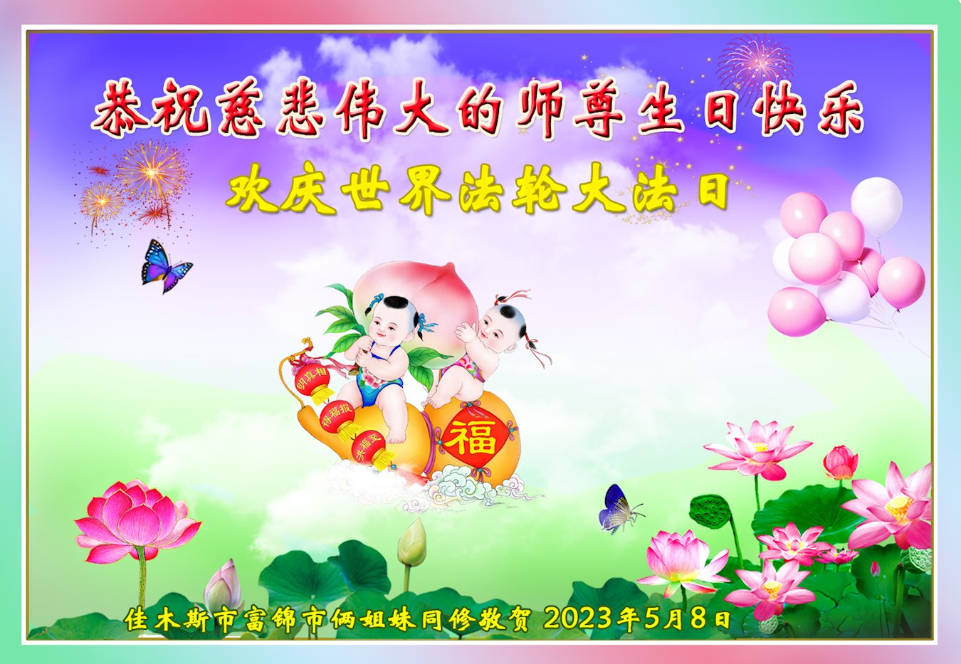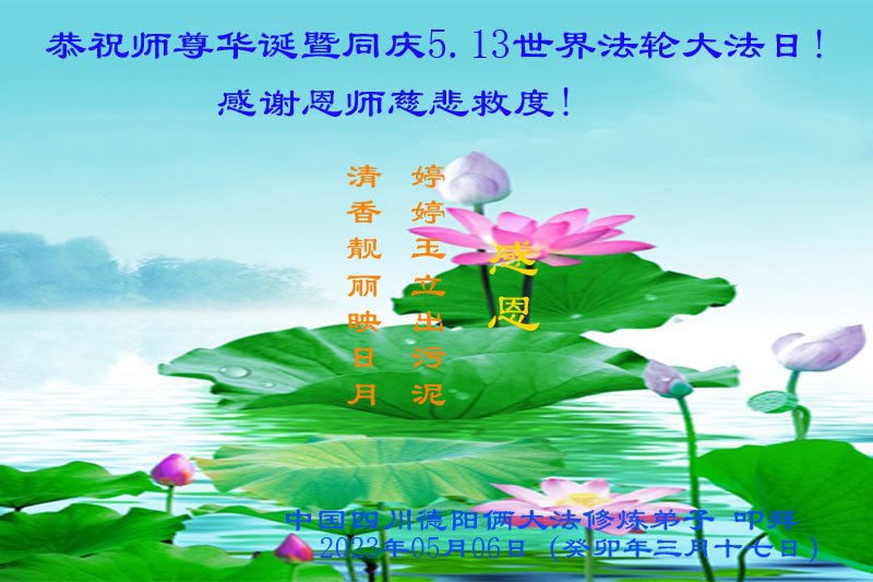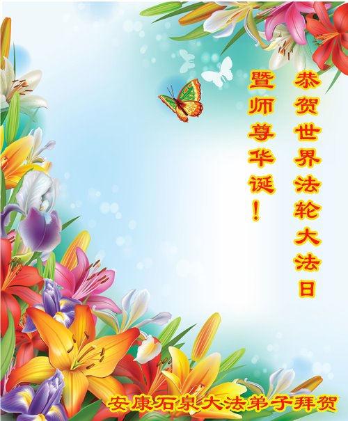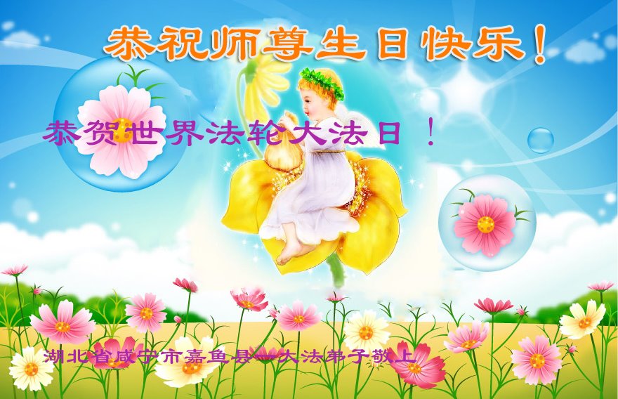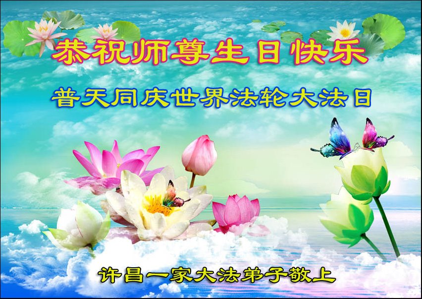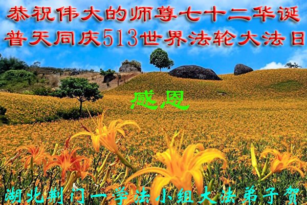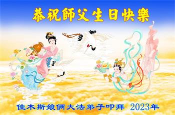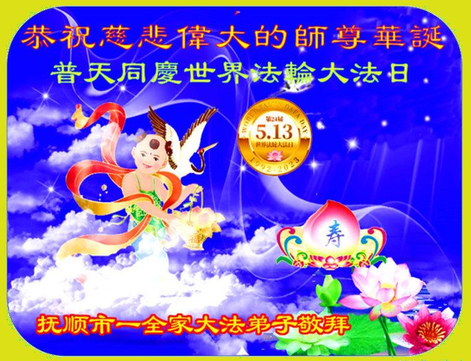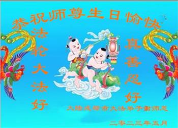 在我们恭祝师父生日和欢庆世界法轮大法日的喜庆时刻,我们心里充满了对师父的无限感恩!慈悲伟大的师父好!恭祝师父生日快乐!