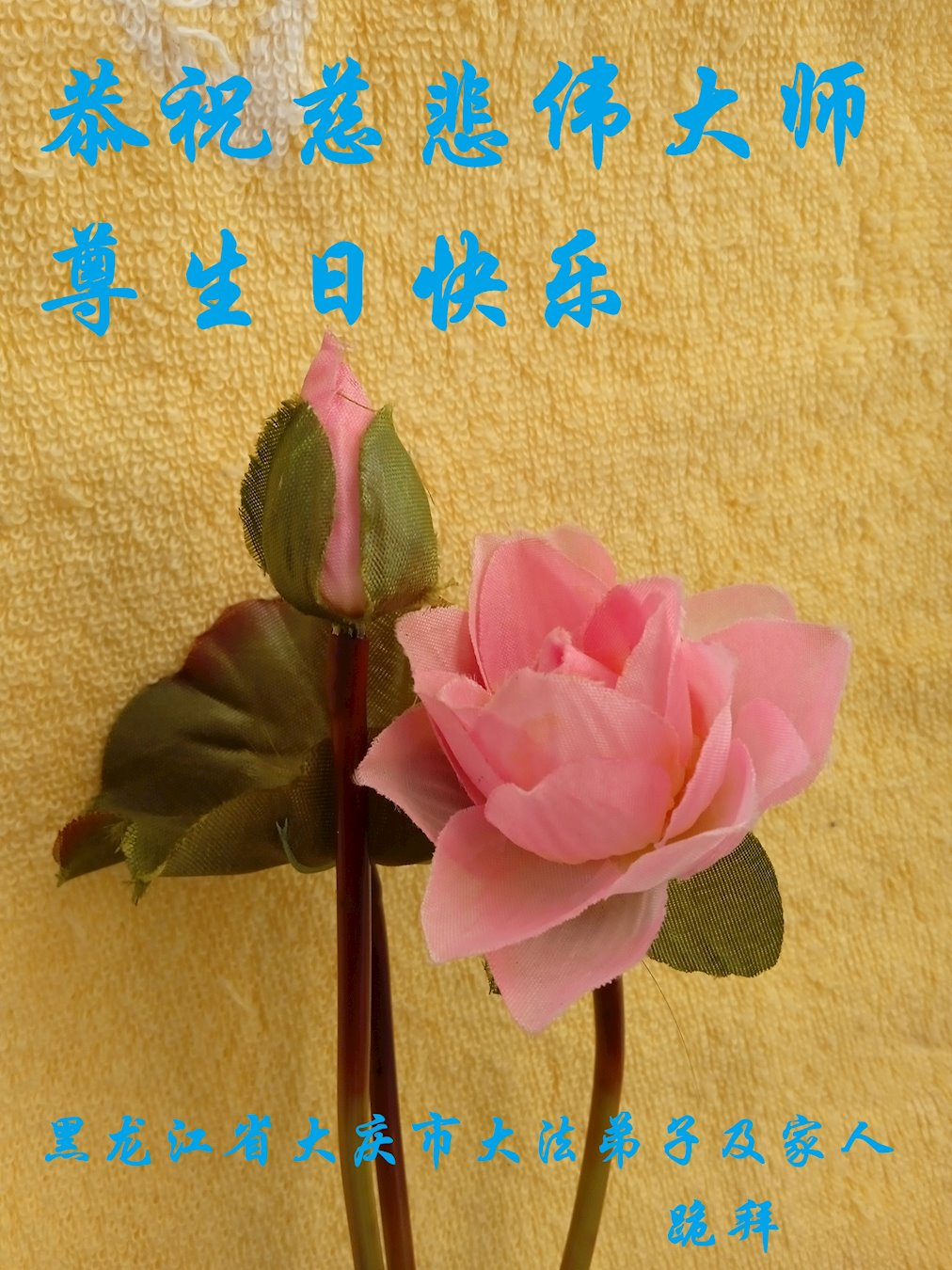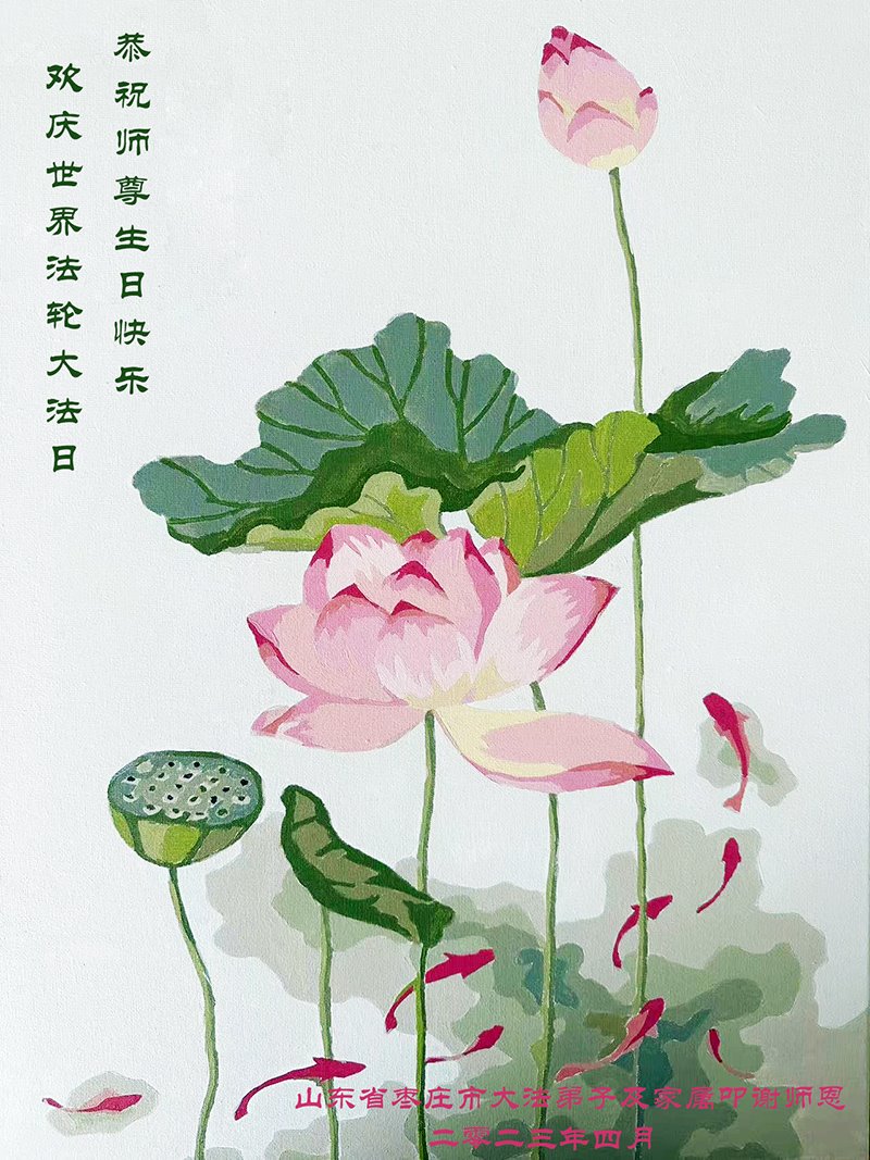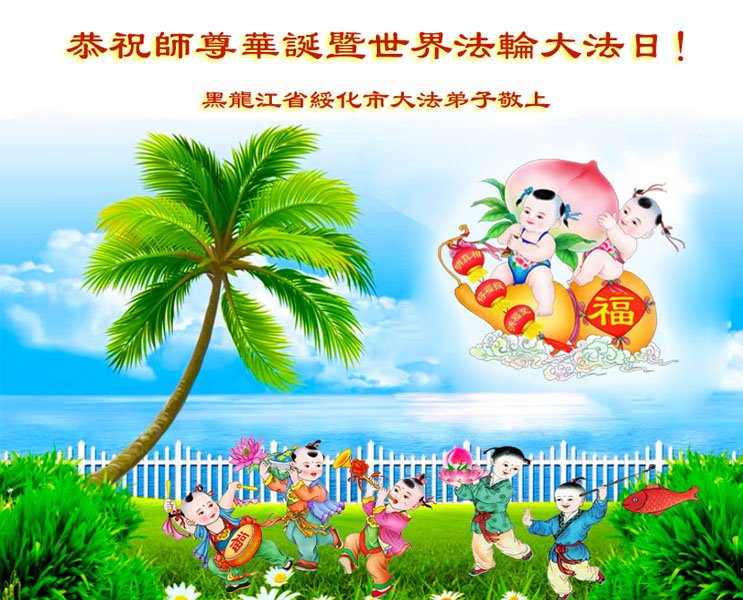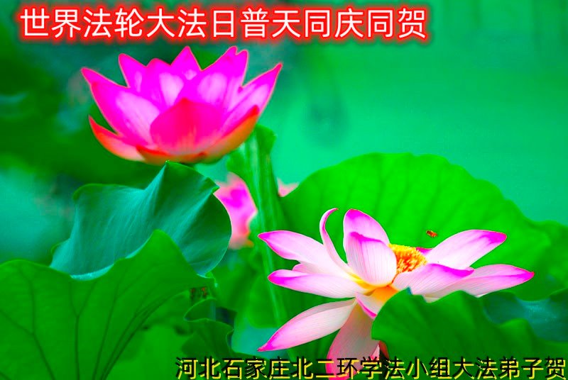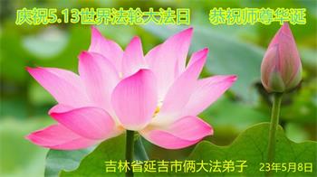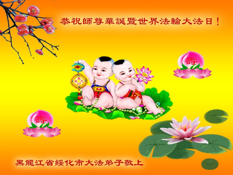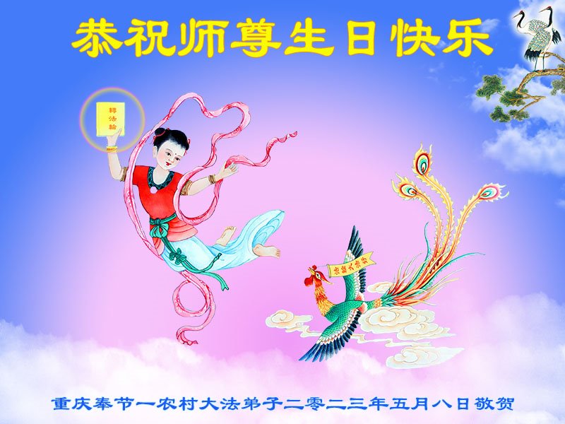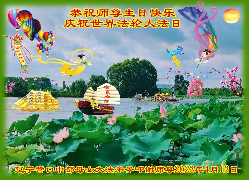 在普天同庆世界法轮大法日的殊胜日子里,我们俩老年大法弟子真诚的问声:师尊好!恭祝师尊生日快乐!感恩师尊慈悲救度!