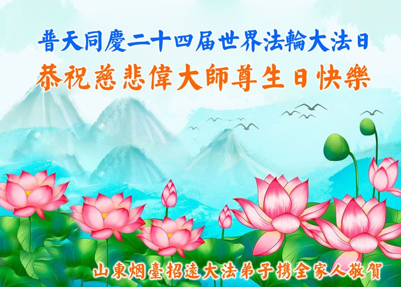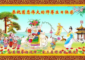 山东招远齐山镇一对夫妻大法弟子携全家八口人敬上