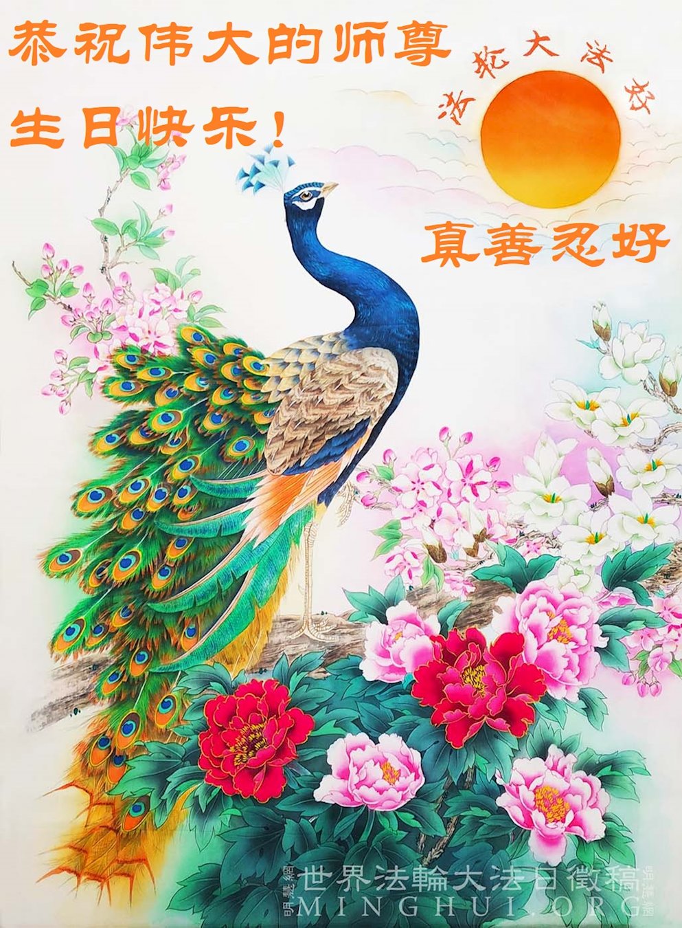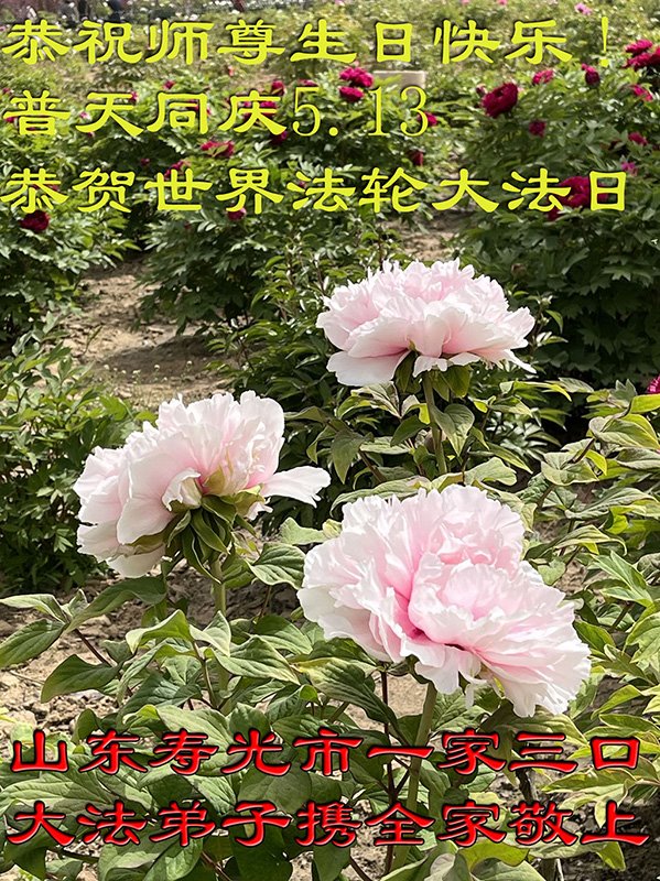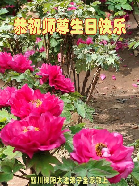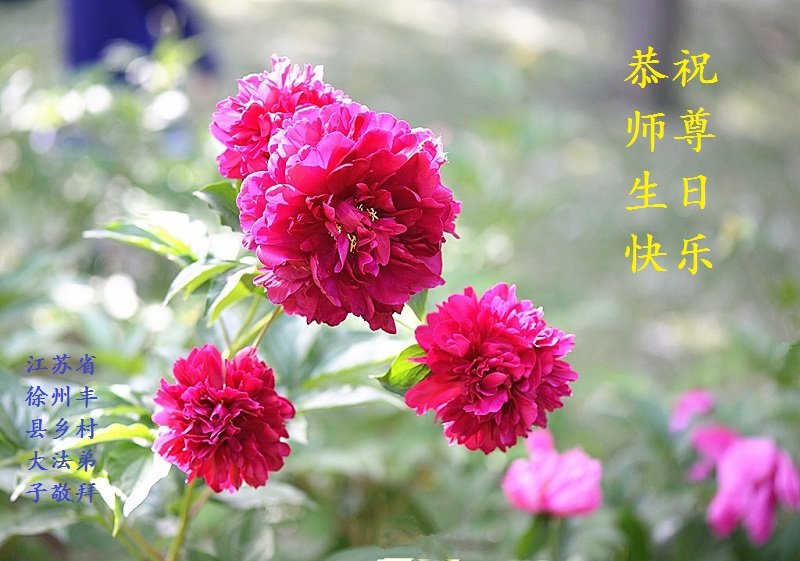 谨以盛开的数朵国色天香之牡丹表达弟子对师尊无限圣恩、无量慈悲的感恩!众大法弟子仰望师尊,恭祝师尊生日快乐!