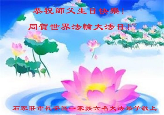 石家庄市一老年大法弟子携老伴及家人敬上