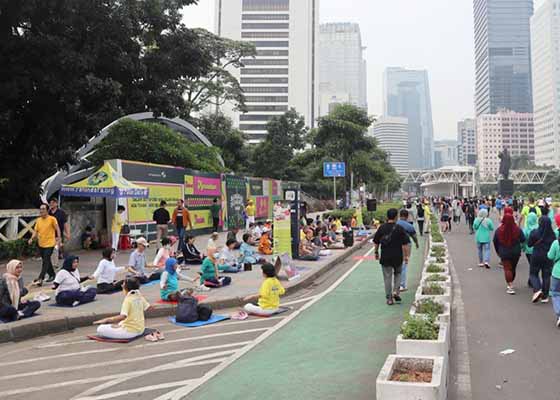 五月七日,印度尼西亚雅加达法轮功学员聚集在雅加达的商务中心苏蒂尔蔓街,庆祝五一三世界法轮大法日,向市民介绍法轮大法。