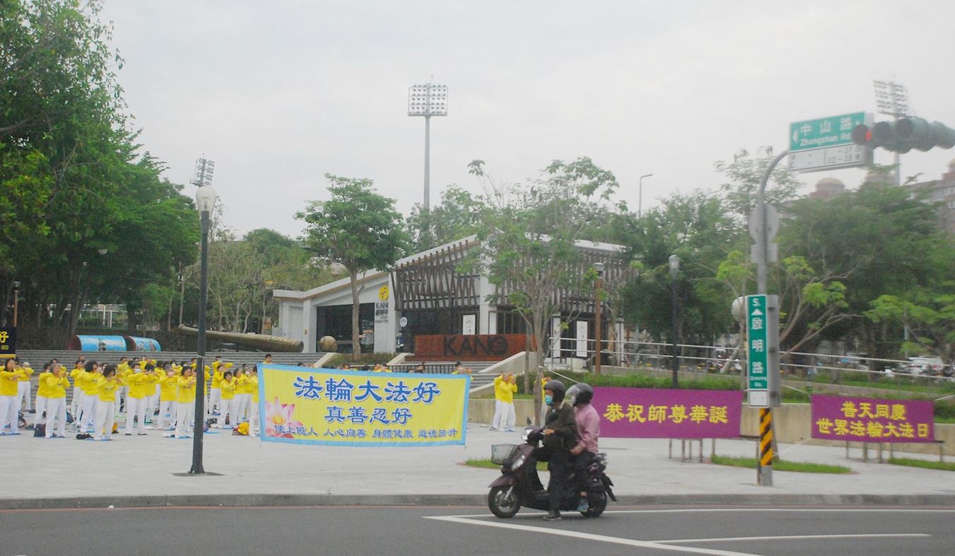 【明慧网二零二三年五月十四日】(明慧记者清汉台湾嘉义采访报道)二零二三年五月一十三日,庆祝世界法轮大法日,台湾嘉义法轮功学员在嘉义市中山公园集体炼功弘法,讲法轮功真相,市民感谢学员传播真相,赞许道:法轮功学员都很善良。