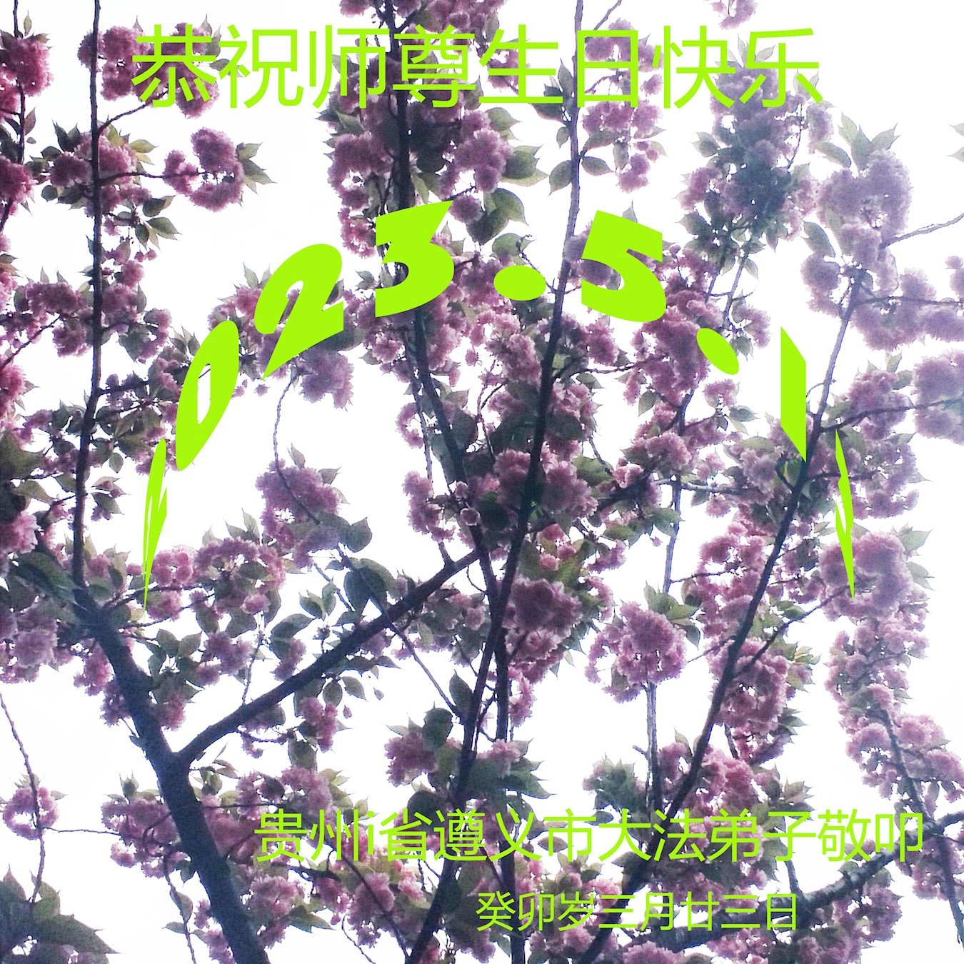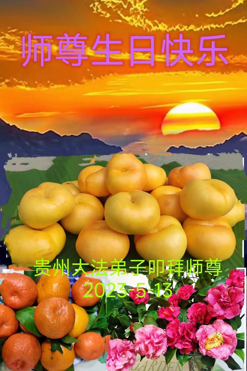 在普天同庆的日子来临之际中国大陆贵州省贵阳市全体大法弟子恭祝师父生日快乐!我们要坚定不移紧跟师父正法進程,迫害不停正念不此,跟随师父一起回家。
