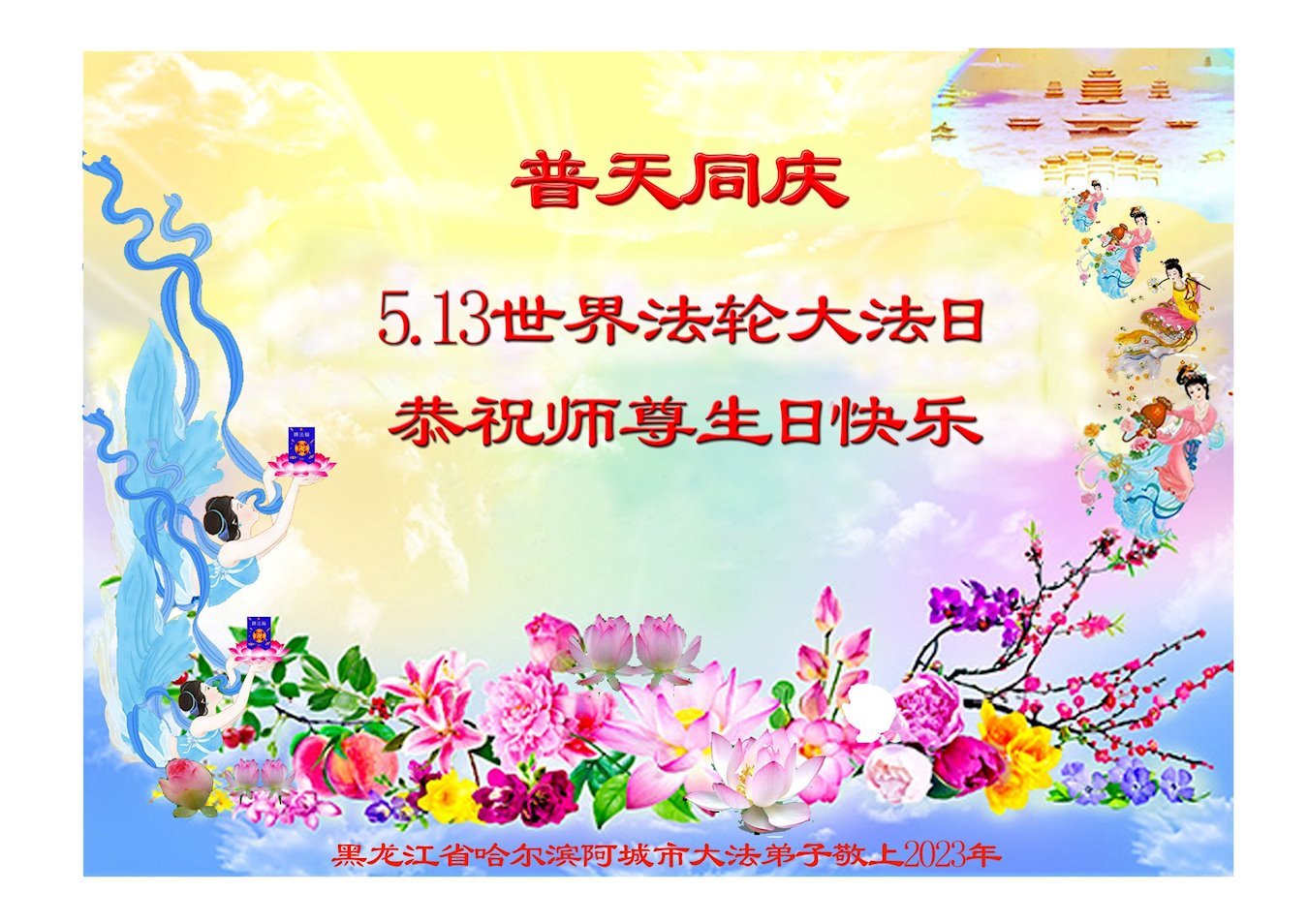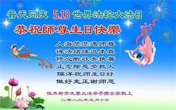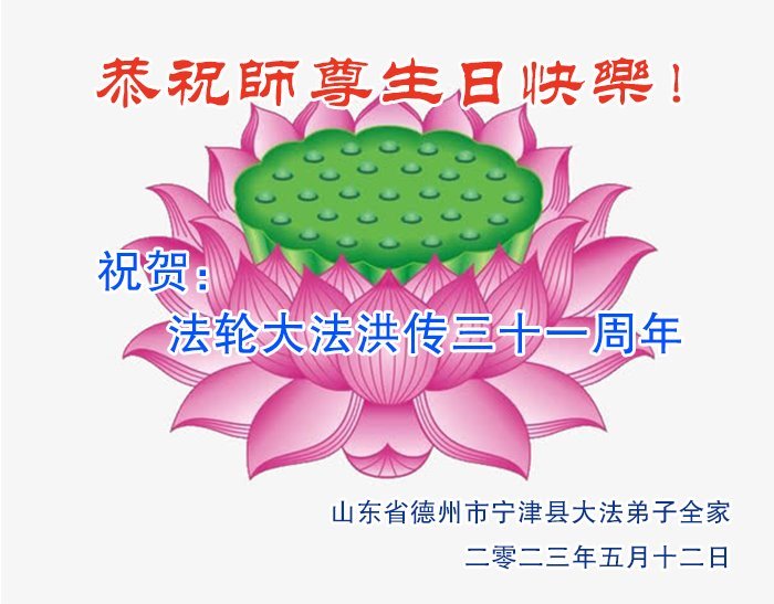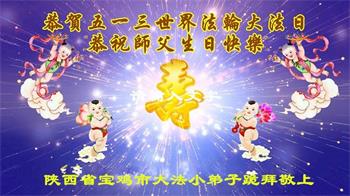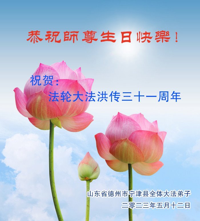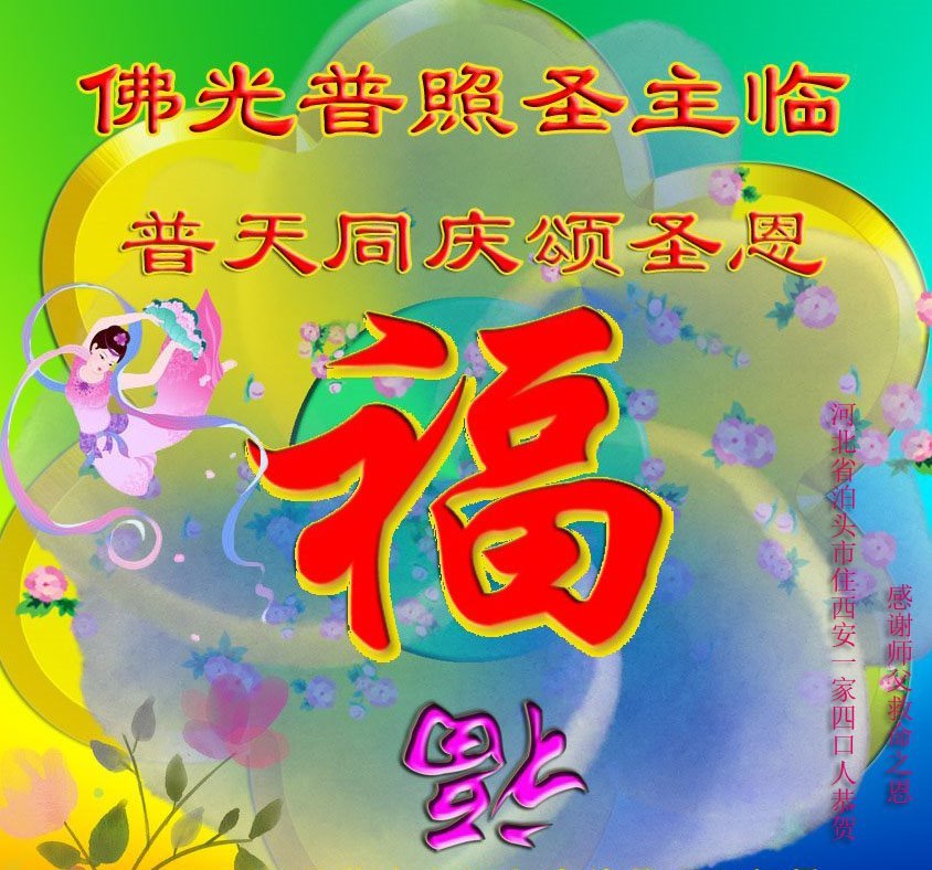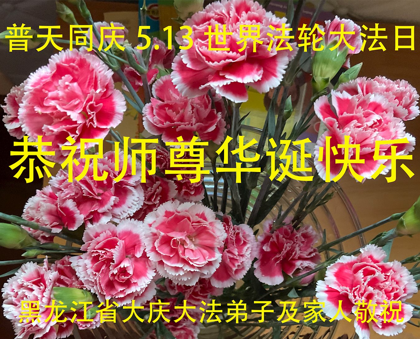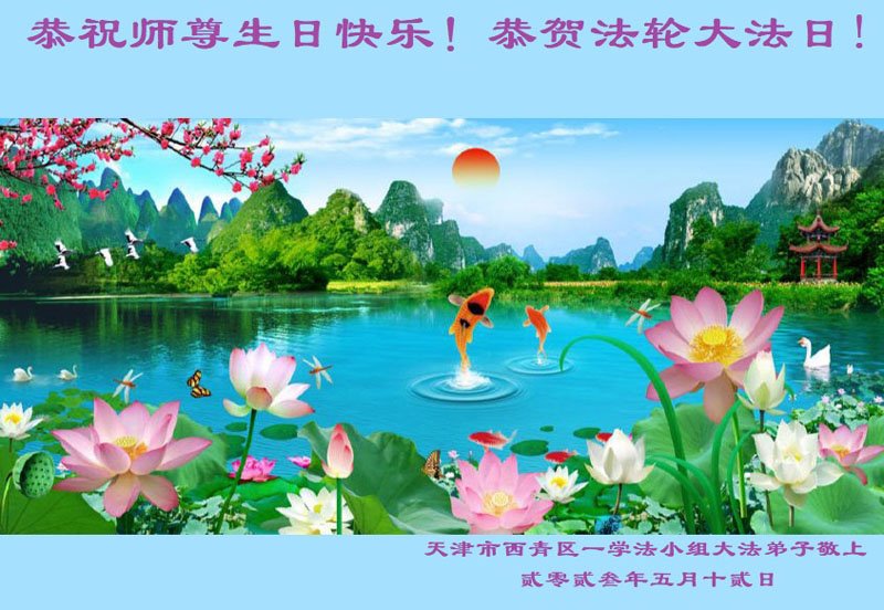 黑龙江省宾县所有明真相众生的肺腑之言与祝愿:五月十三日是普天同庆、隆重而欢庆的节日!不只是大法弟子的节日,也是普天众生的节日!我们怀着无比喜悦的心情,恭祝慈悲伟大的李大师生日快乐!法轮大法日生生不息、万古留传!真诚的问候李大师:您辛苦了!感谢您救度之恩!同时也感激您教的大法弟子!