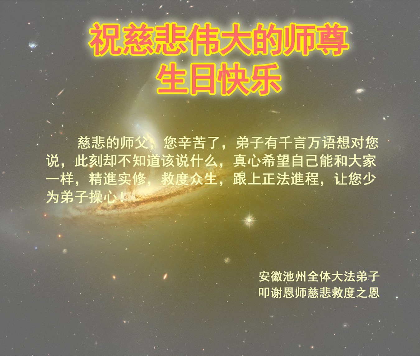师父生日快乐!弟子唯有精進实修,正念除恶,多救世人,才不负师恩。