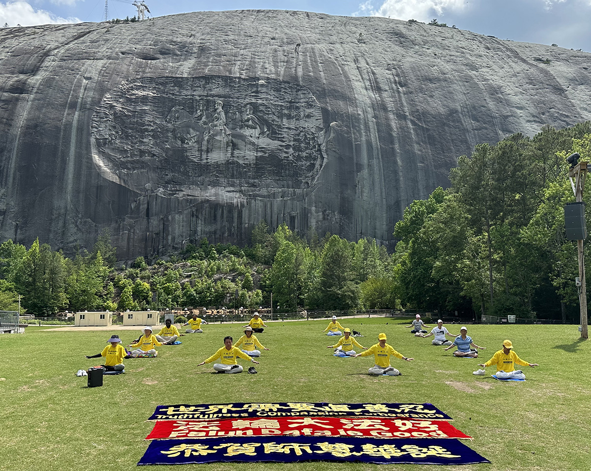 石头山公园以当地一块巨大成山的花岗岩闻名,位于阿巴拉契亚山脉最南端的起点。多年来,这里是法轮功学员钟爱的举办活动与讲真相的地点,因为在一九九七年师尊曾经莅临此地,并在这里为学员讲法。