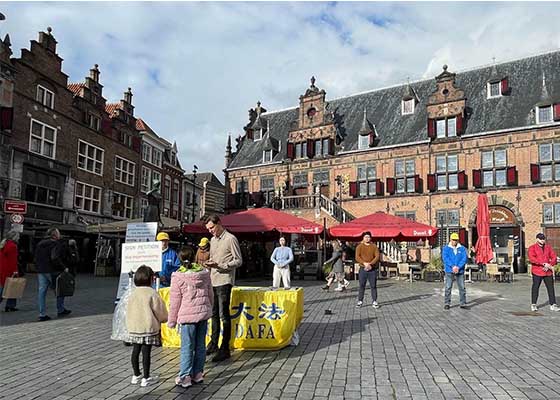 荷兰的法轮大法学员每个周末都会在各城市设立真相展位,呼吁人们关注中共对法轮功学员的迫害,同时与荷兰民众分享修炼法轮大法的裨益。