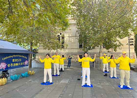 在法轮大法弘传世界31周年之际,南澳大利亚州部分法轮功学员在市中心以集体炼功及讲真相等方式庆祝世界法轮大法日,恭祝师尊华诞。