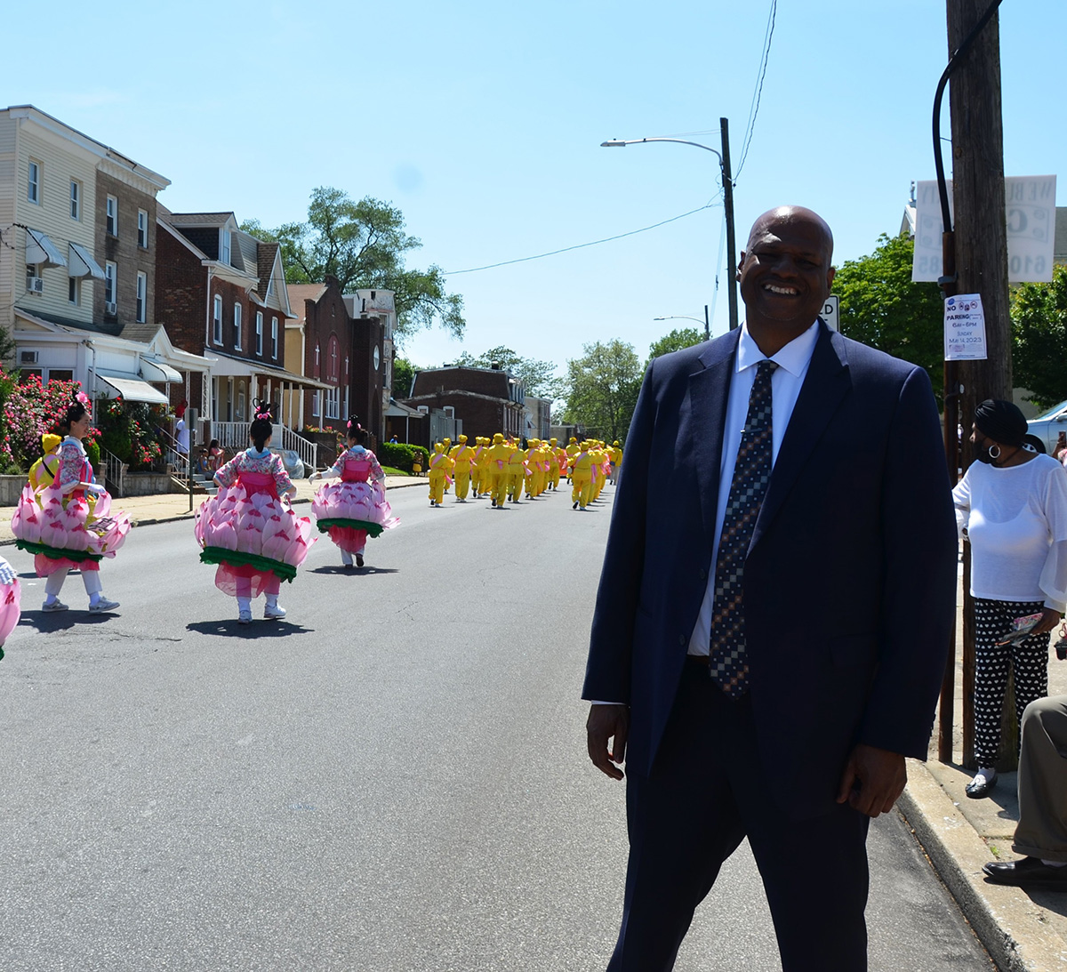 工程经理罗伯特·鲁克斯(Robert Rooks)称赞法轮功队伍给今年的游行增添了很多丰采。“我喜欢他们舞动的步伐,美妙的音乐,还有鲜艳的服装。莲花舞更是特别,非常优美。”得知法轮功学员来自纽约时,鲁克斯惊叹到:“啊,太棒了!切斯特市欢迎你们!”
