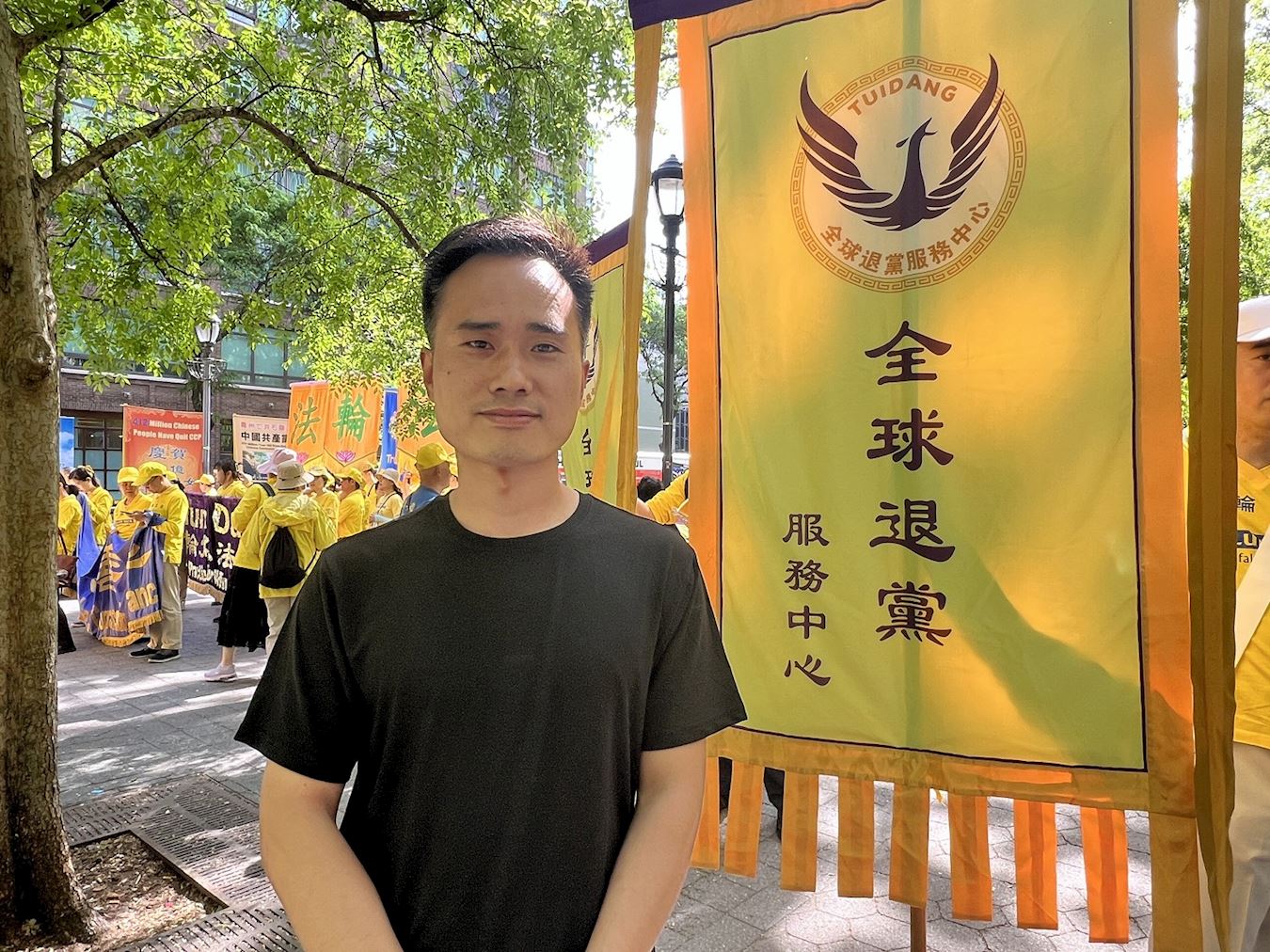 翟德云是中国大陆的一名高中老师,去年十一月份来美。二零二三年五月十二日,他在纽约时代广场看到法轮功学员游行,庆祝世界法轮大法日。