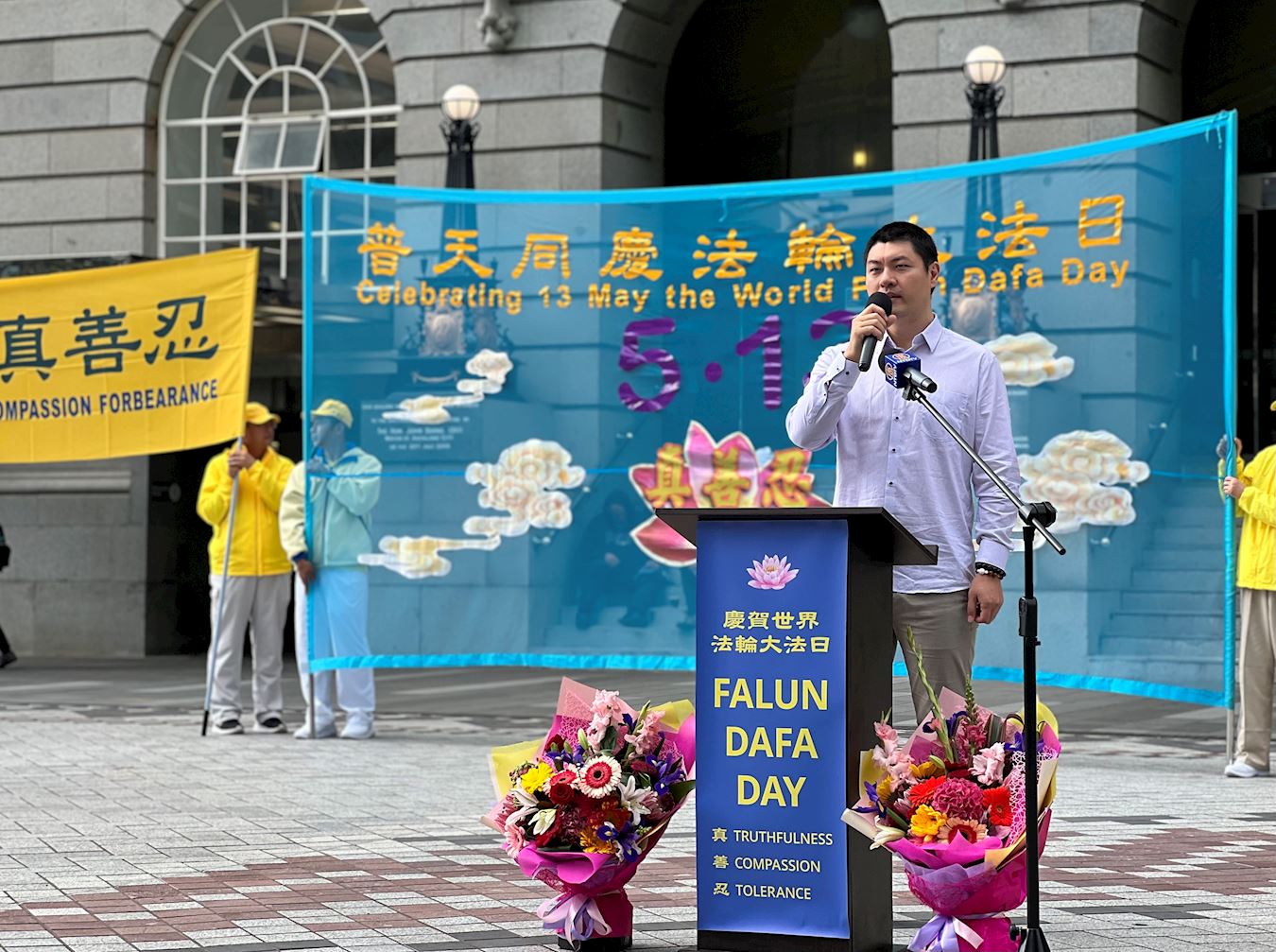 他说:“借着这个机会,虽然我还不是学员,我想跟法轮功创始人李洪志大师说:我衷心感谢您,祝您生日快乐!”