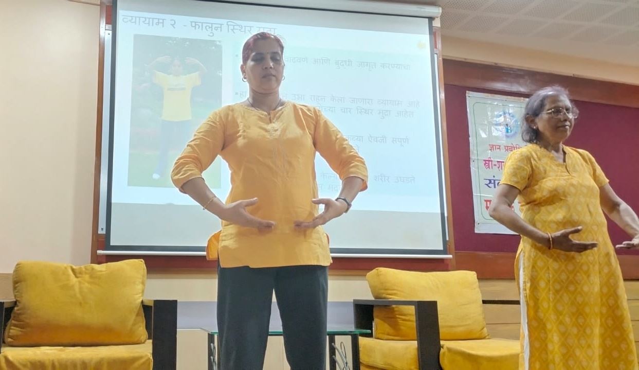 【明慧网二零二三年五月四日】二零二三年四月二十一日,法轮大法修炼者应邀来到印度浦那市一所知名的高中,为近八十名社工人员开办一次弘法教功班。参与者们在学炼功法中感受到法轮大法宁静祥和的能量后,表现出浓厚兴趣,表示要继续学炼大法。
