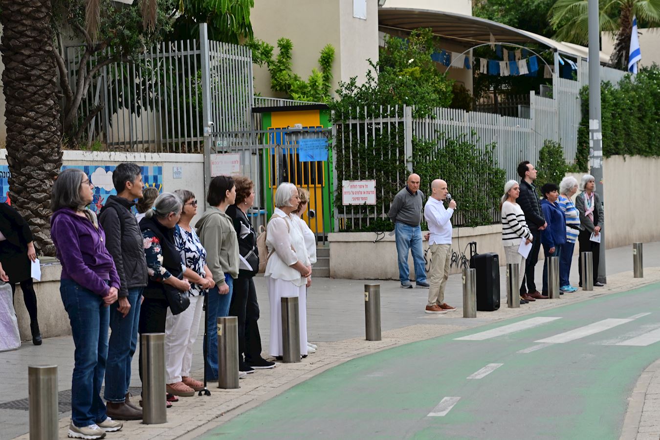![]() 图1:二零二三年四月二十三日,以色列法轮功学员在特拉维夫的中使馆前集会,纪念“四·二五”和平上访二十四周年。 |