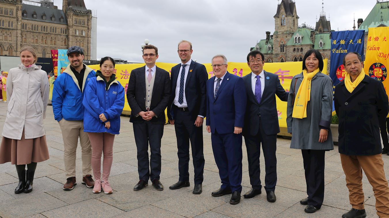 当天,十四位国会议员和一位议员代表,与来自加拿大东部的部分法轮功学员,汇聚在首都渥太华国会山前,庆祝法轮大法弘传三十一周年。现场同庆法轮大法日的议员有朱迪·思格若(Judy Sgro)、加内特·吉尼斯(Garnett Genuis)、斯考特·瑞德(Scott Reid)、詹姆斯·贝赞(James Bezan)、泰德·福克(Ted Falk)、玛丽莲·格拉杜(Marilyn Gladu)、汤姆·克米奇(Tom Kmiec)、理查德·马特尔(Richard Martel)、柯林·嘉莉(Colin Carrie)、阿诺德·威尔森(Arnold Viersen)、皮埃尔·保罗-胡斯( Pierre Paul-Hus )、马克·道尔顿(Marc Dalton)、雷切尔·班达妍(Rachel Bendayan)和丹·梅斯(Dan Muys),麦可·库珀(Michael Cooper)议员也派代表到现场支持。