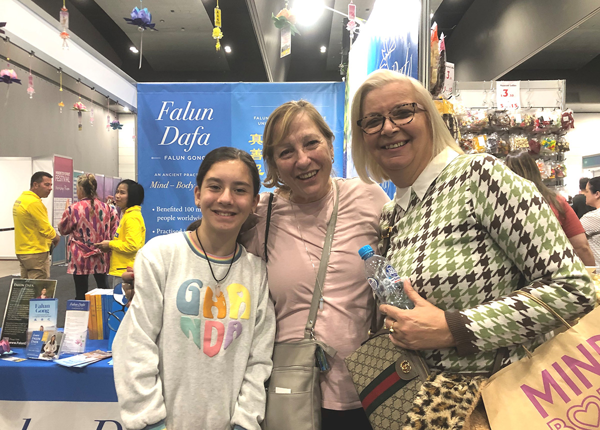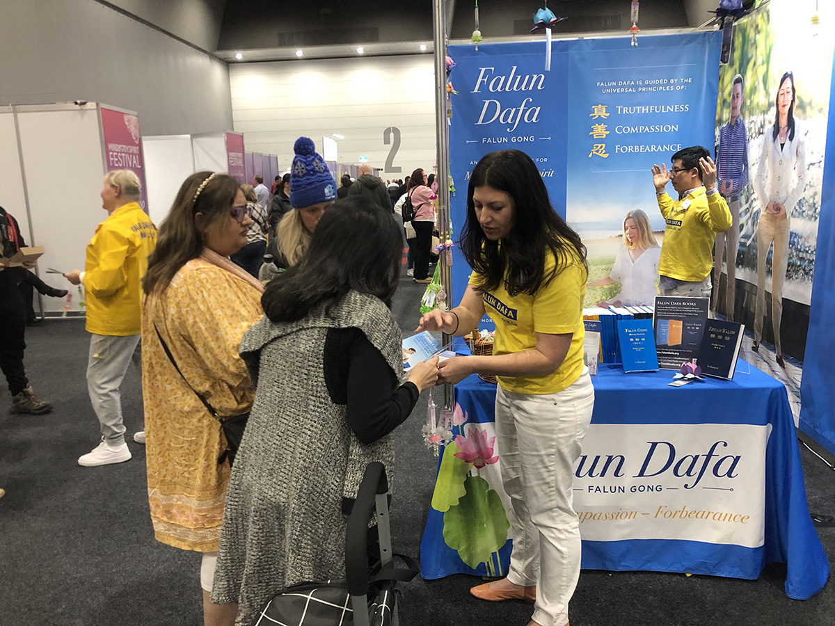 二零二三年六月九日至十二日,墨尔本法轮功学员参加了为期四天的博览会,博览会在墨尔本会展中心(Melbourne Convention and Exhibition Centre)举行,吸引了超过一百八十个参展商以及近两万名观众。每天都有许多民众在法轮功展位驻足,了解详情,学炼功法。