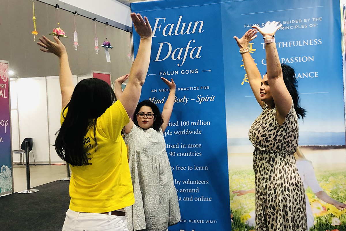 阿什莉·詹特利(Ashley Gentley)来自墨尔本北部城镇赫斯特布里奇(Hurstbridge),她也是在博览会上第一次听说法轮功,当得知法轮功的教学和资料都是免费的,她说:“这真是太好了!”