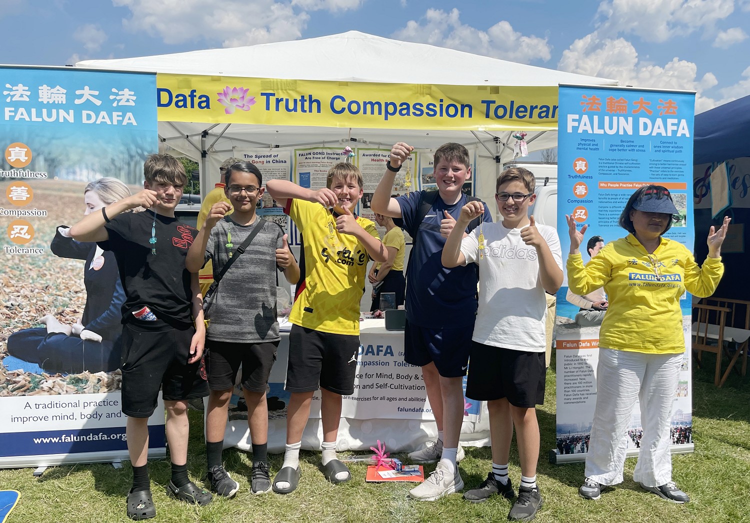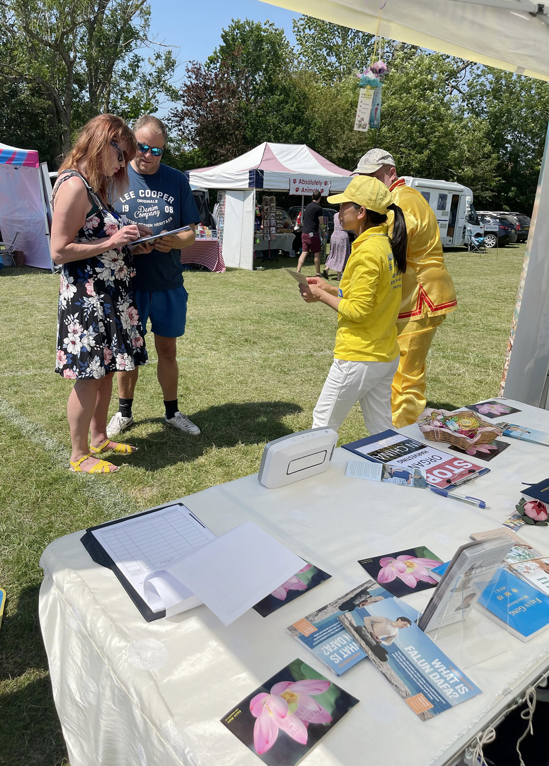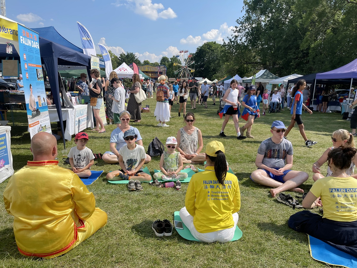 英国的夏天艳阳高照,清风徐徐,从官方到民间团体的嘉年华活动都在开展着。当地法轮功学员已经在这里弘法十年了。活动主办方为当地小区和周边地区的所有人提供一整天的娱乐活动,如野外竞技、现场音乐表演、游乐场、狗展、老式车辆展示等,还包括一百多个摊位。