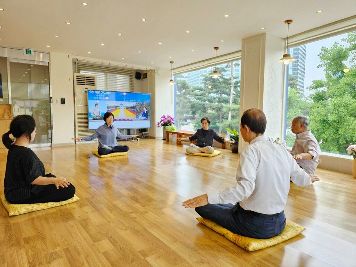 柳芳贤在天梯书店购买了相关书籍后,就开始向家附近的法轮功学员学习炼功动作。听说五月十三日(世界法轮大法日),在首尔广场有很多法轮功学员集体炼功的消息后,她也去参加了该活动。
