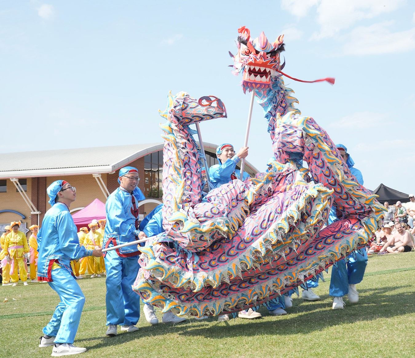 游行活动后举办方邀请法轮功学员上台介绍法轮功,为民众展示法轮功功法、表演腰鼓和舞龙。法轮功学员向民众介绍了法轮功并告诉人们法轮大法是源自中国的佛家修炼大法,通过修炼可以使身心受益。而在中共的极权统治下,遵循真、善、忍的法轮功学员正在遭受无辜的迫害。