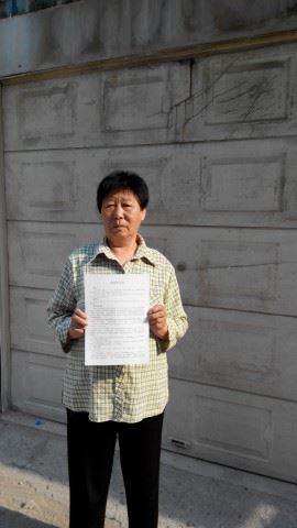 我们又来到市纪检,侄女、侄媳進去,我们在外面发正念,求师父加持。她俩在门外被保安拦下了,说明来意后,保安打了一通电话,下来一个四十多岁的女人,模样挺和善,她说自己是处长。侄女、侄媳说要告警察,并把真相信和诉状都给了处长。处长说,法轮功好,给我看没事,但要注意安全。于是,将她俩带進了办公室。侄女、侄媳把身上的淤伤给处长看了。处长说,让他们赔医药费!侄女说,没看医生,没有医药费。处长说,这在国外早把他们给办了,在中国有点难!