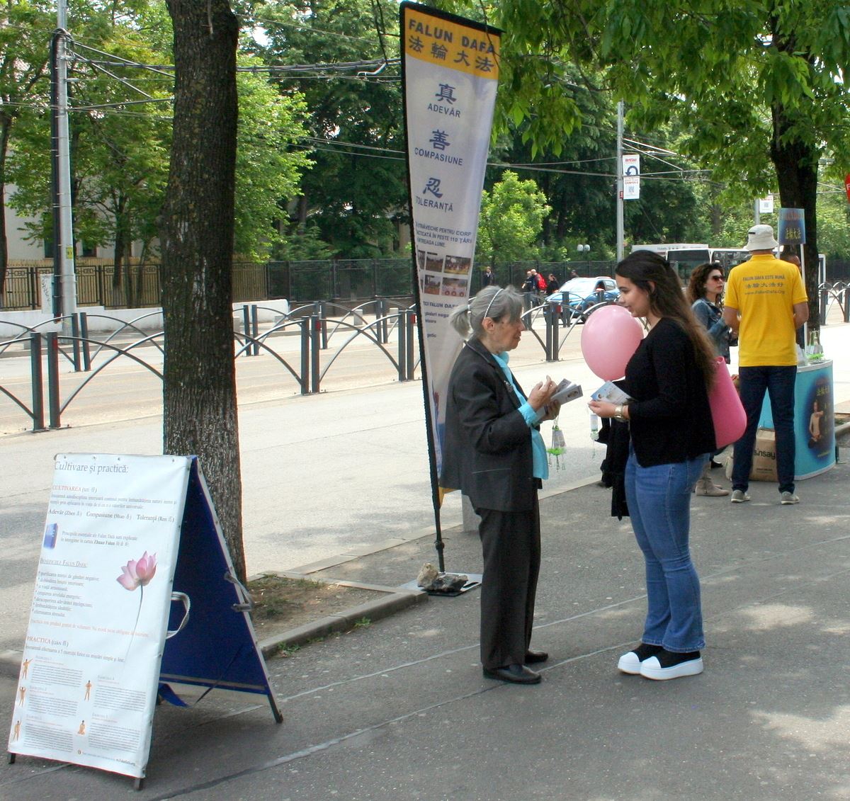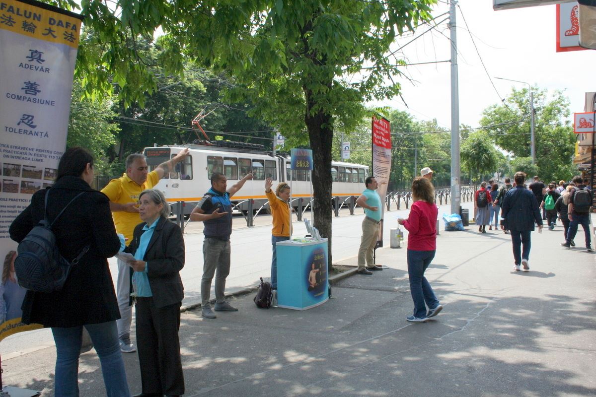 当天,来自各行各业的布加勒斯特民众在真相展板前驻足,与学员们交谈,他们不但了解了很多关于法轮大法的信息,更有不少人表达了对法轮大法和真、善、忍价值的支持,并谴责中共针对法轮功持续至今长达二十四年的迫害。