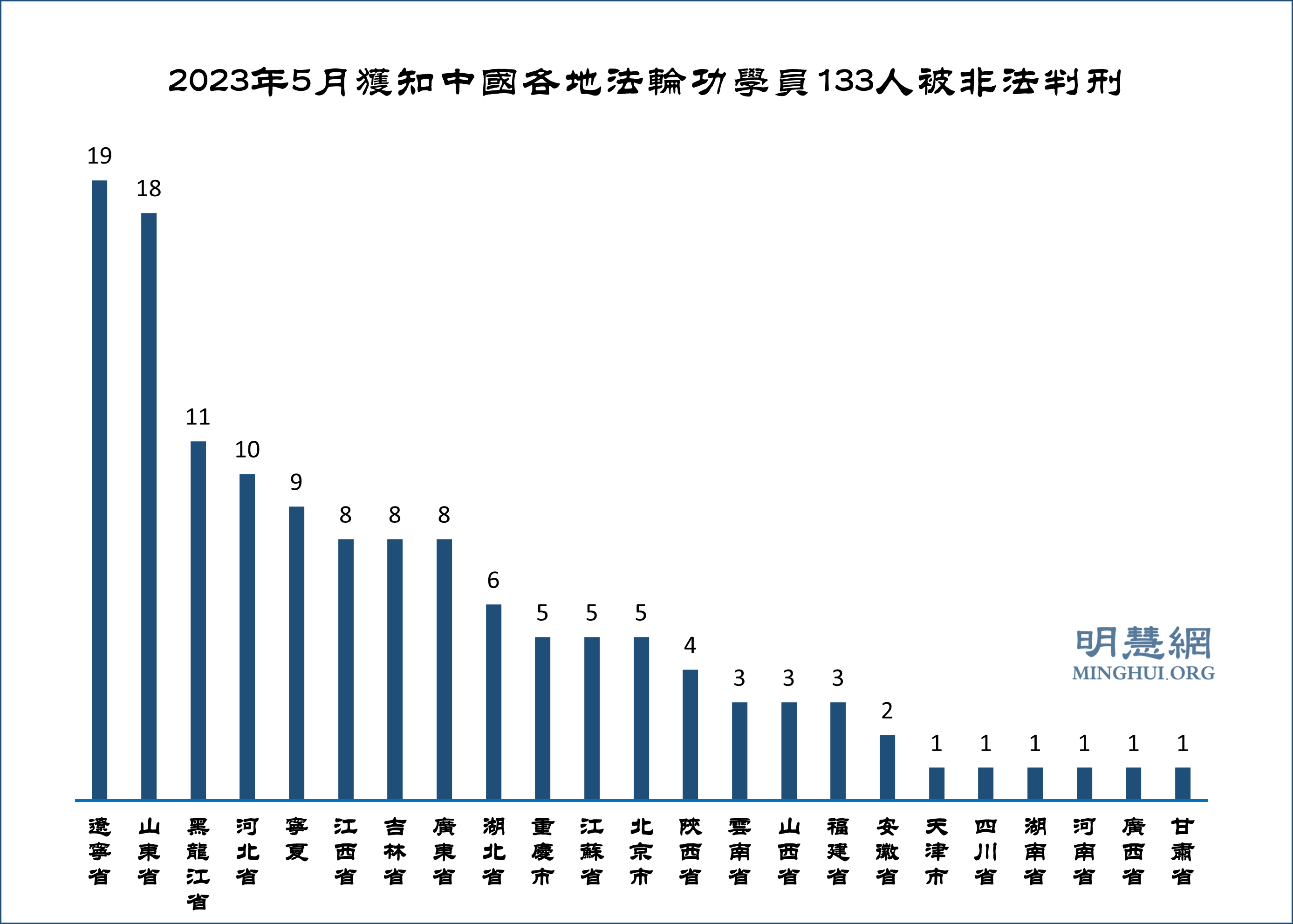 ![]() 图2:2023年5月获知中国各地法轮功学员133人被非法判刑 |