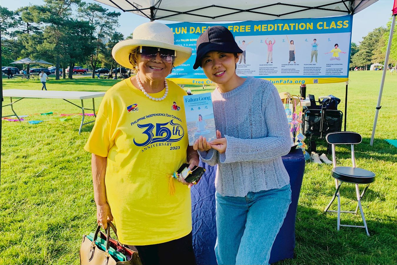艾格尼丝·米兰达(Agnes Miranda)是菲律宾独立日委员会的主席,同时,她还是加拿大世界金融集团创始人、执行副主席。她来到法轮功展位前对学员说,“我之前对法轮功已有所了解,我知道法轮功是一种传统的修炼方式,有益于身心健康。同时,我自己也有每天打坐一小时的习惯。”