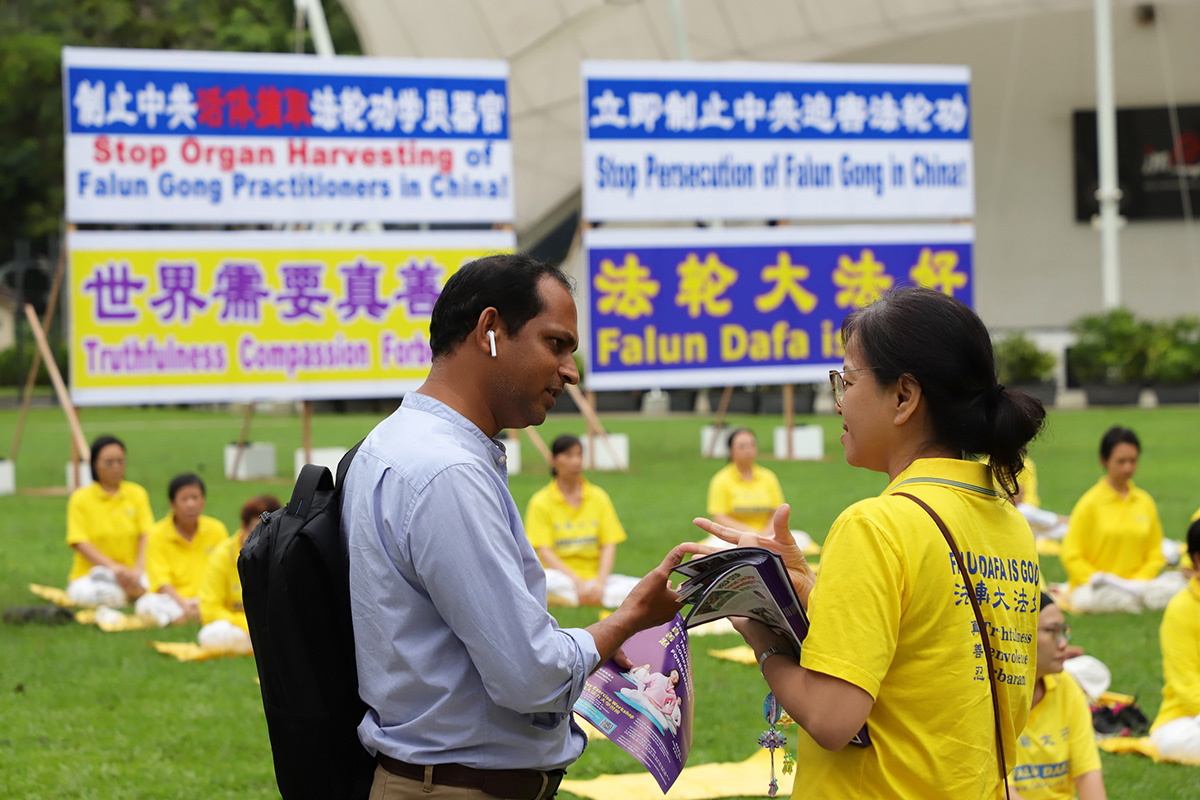 在新加坡工作的菲律宾人埃夫伦(Efren)说:“我反对活摘器官,这是不人道的,我支持法轮功学员这个活动。”