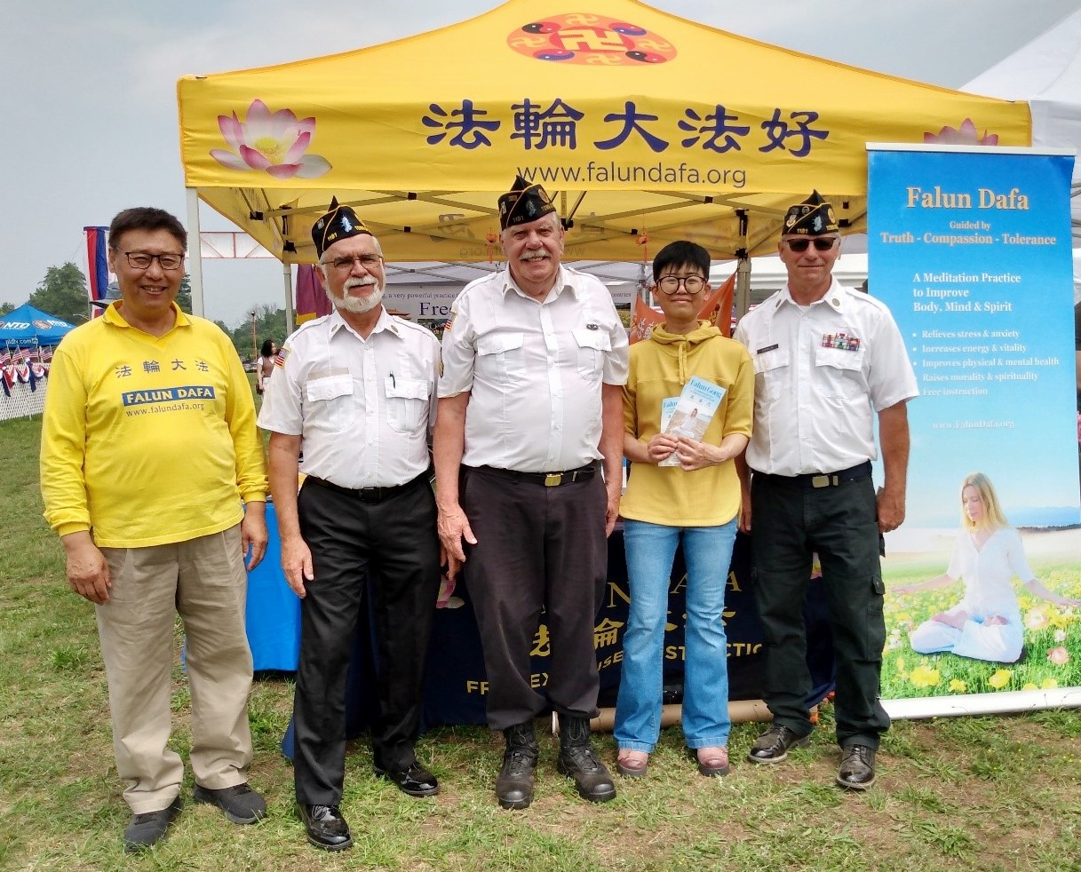 几位前来参加活动开幕式的美国老兵看到法轮功学员们炼功,他们感觉很祥和。在得知法轮功这个信仰团体正在被中共残酷迫害,他们很难过表示,他们支持法轮功。
