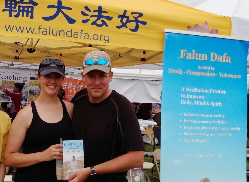 一位男士路过展位,他接过了学员递给他的法轮功真相传单,听了学员对法轮功的介绍,得知法轮功是基于中国真正古老的传统文化的修炼时很感兴趣。当他听到法轮功在中国不仅遭受到残酷的迫害,法轮功学员还被中共活摘器官时,既震惊又义愤,他特意把他太太叫过来,表示他们支持法轮功学员反迫害。