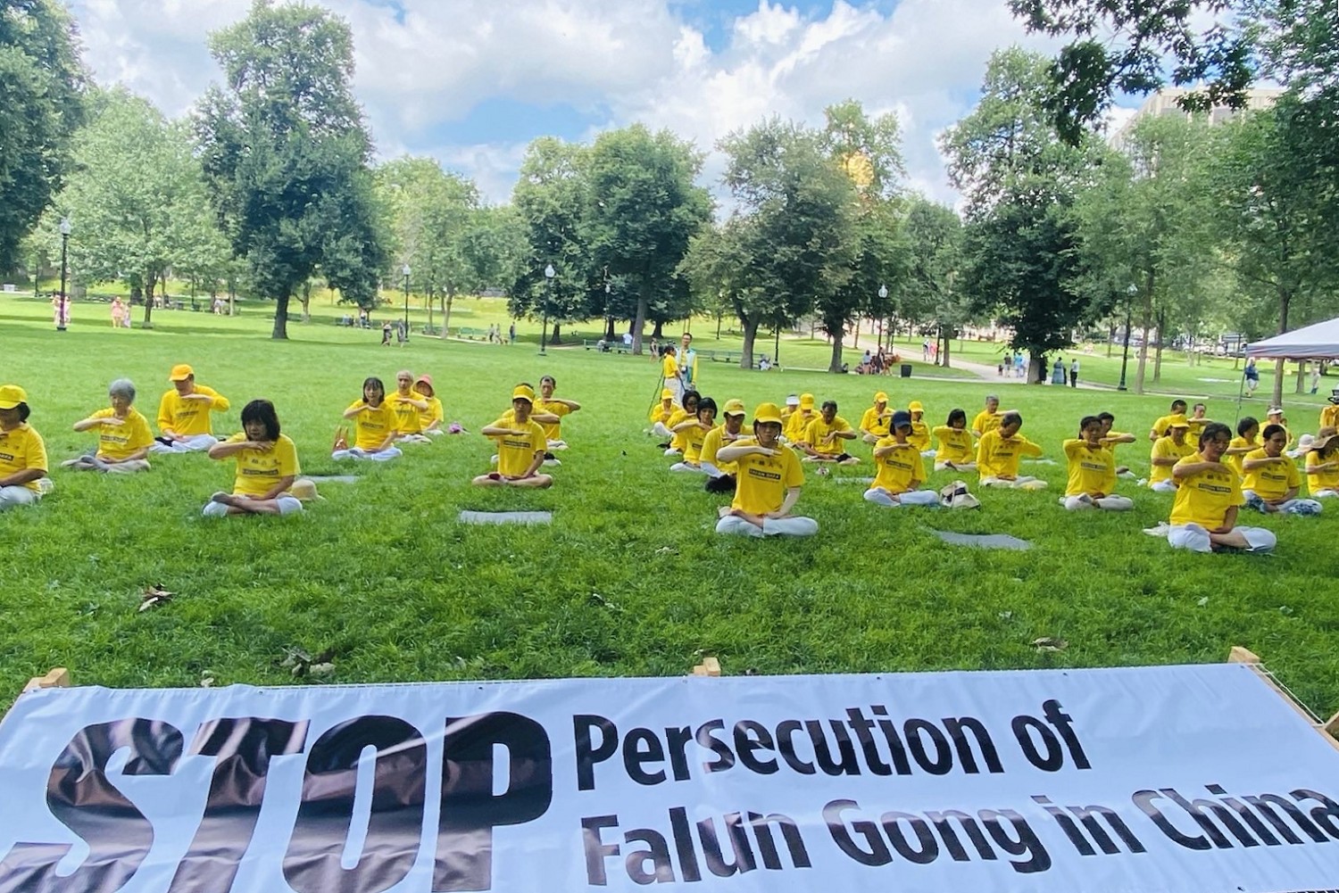 中午时分,学员们继续在公园集会,加拿大政要到场演讲,谴责中共暴行,呼吁结束中共。