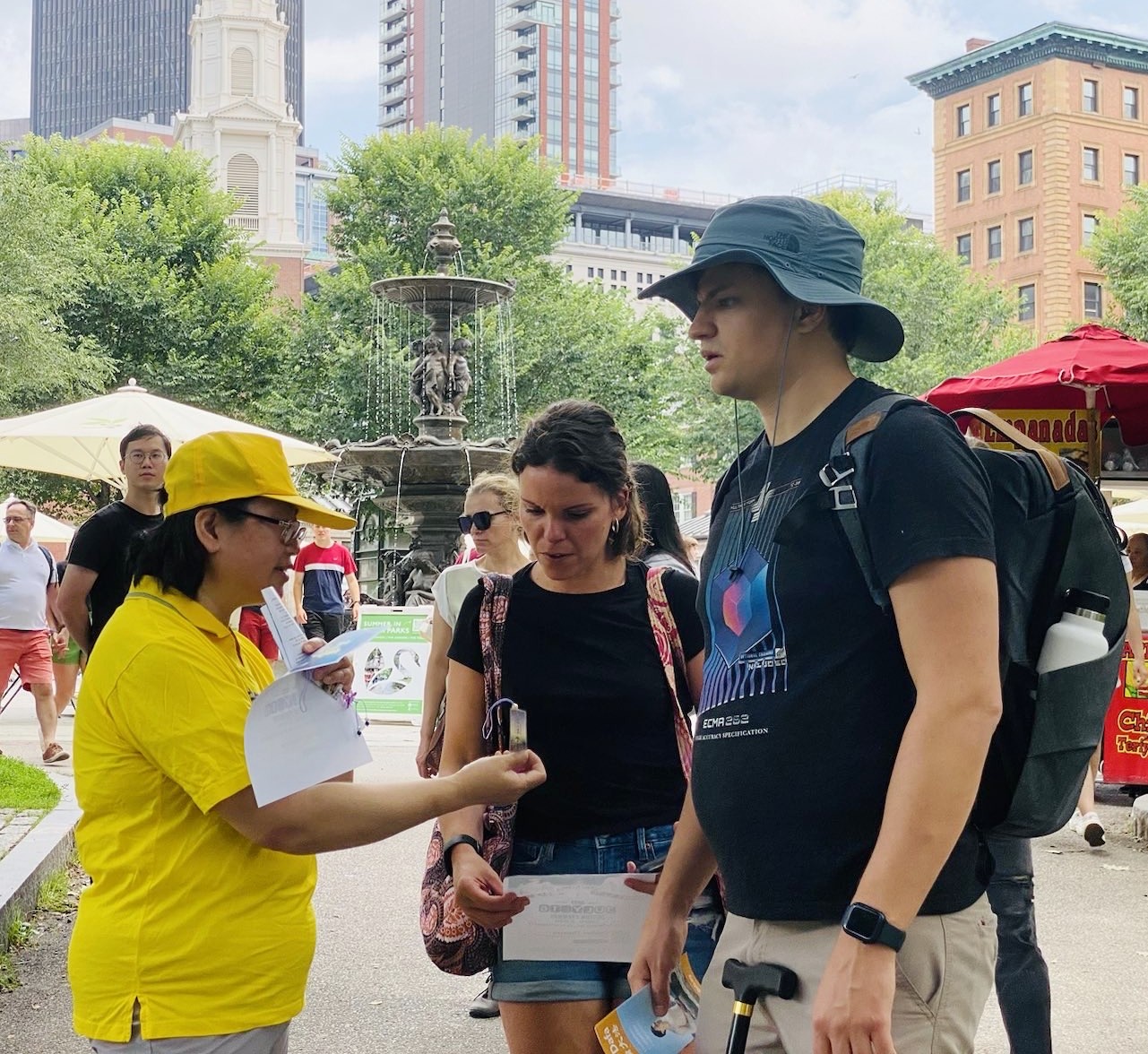 活动当天有不少从国内来旅游或出差的华人,想了解有关法轮功资讯。还有当地华人特别过来支持,并说“你们做得真棒,中共就怕你们法轮功”。