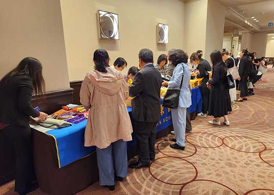 二零二三年加拿大法会在多伦多市中心喜来登酒店召开。法会期间,多伦多法源书店在会场摆设摊位,供来自各地的法轮功学员请回大法书籍。