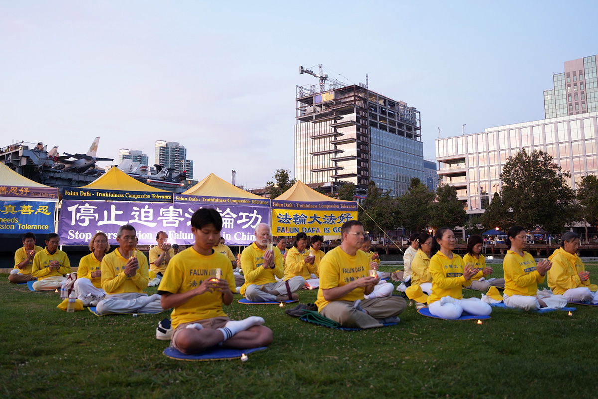 ![]() 图5~6:圣地亚哥法轮功学员举行烛光夜悼 |