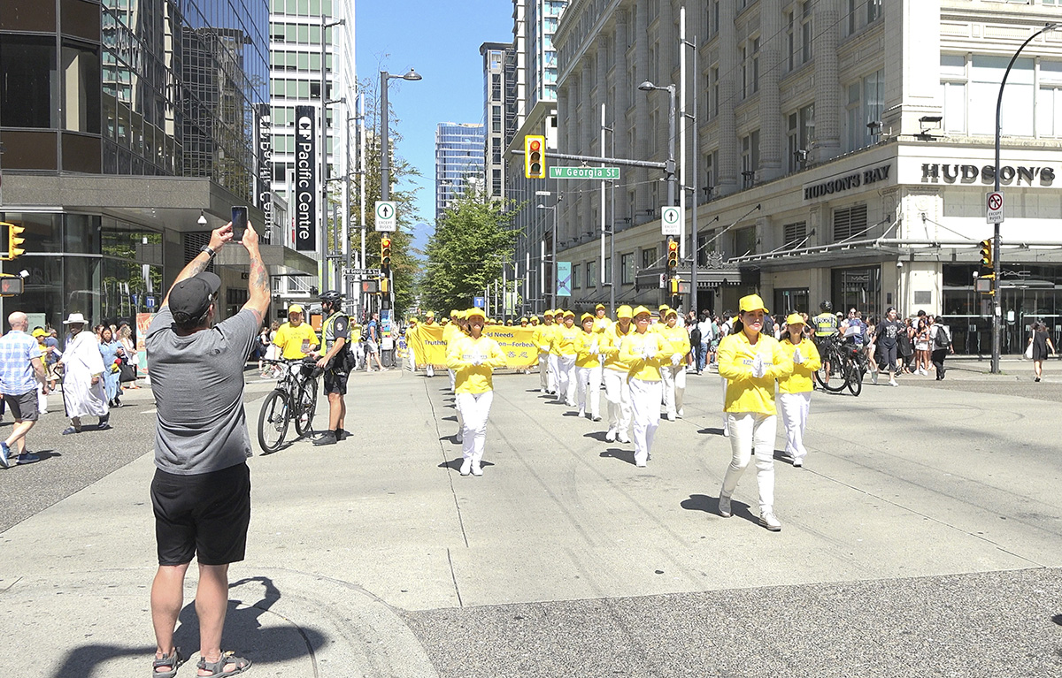 ![]() 图1~9:二零二三年七月十五日,温哥华法轮功学员在市中心举行反迫害二十四周年纪念活动,观众纷纷拍摄游行队伍。 |