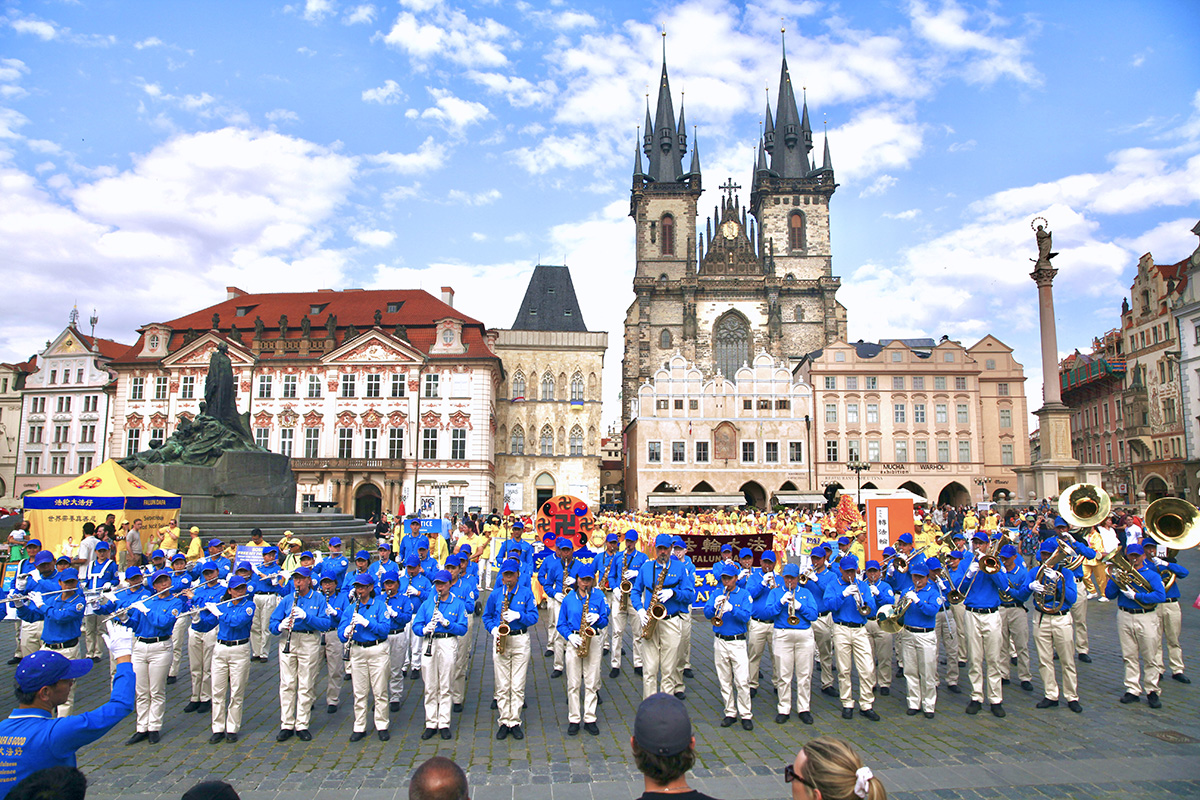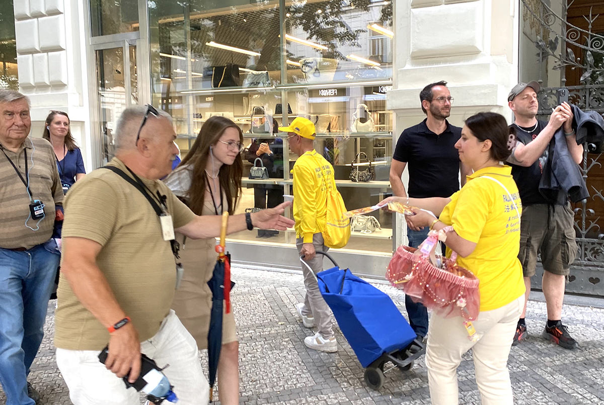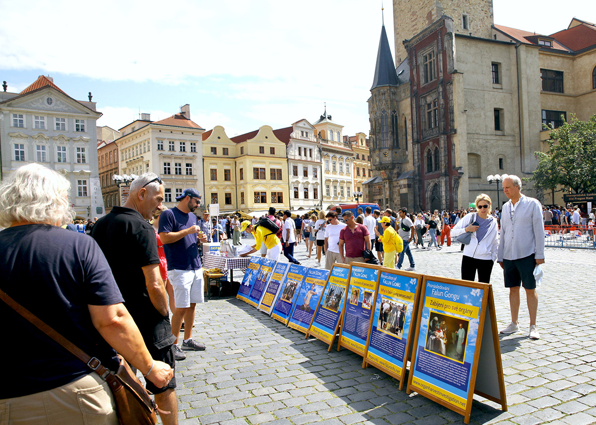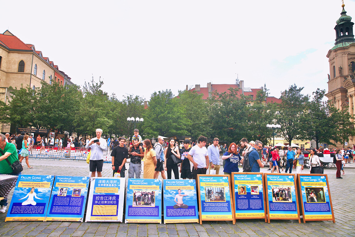 法轮功学员的集会游行活动当天,布拉格天气凉爽,游人如织。时逢中欧最大的民俗节在布拉格召开,来自世界二十多国五十多个团体也聚集在布拉格。法轮功学员的集会与游行都吸引了大量民众驻足观看。多国民众在了解了中共迫害法轮功的真相之后,纷纷签名声援法轮功学员反迫害。