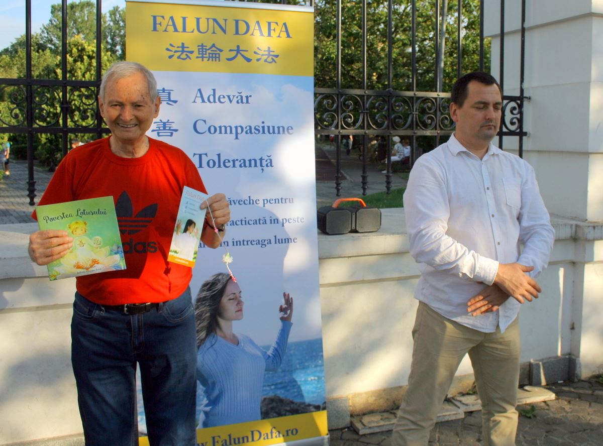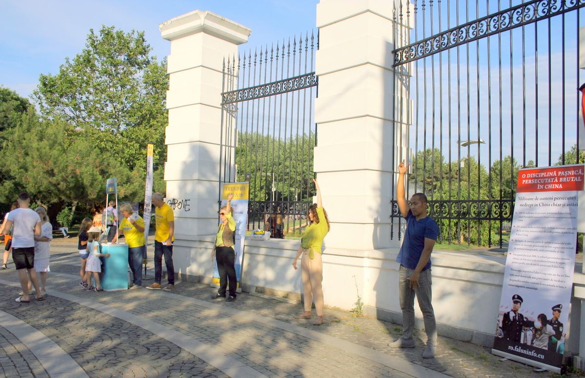 活动中,学员们展示缓、慢、圆五套功法,许多市民及游客被悠扬的炼功音乐和学员们舒缓的动作吸引。不时有游客上前了解法轮功,并询问哪里可以学功。有人当场就学着炼功动作。