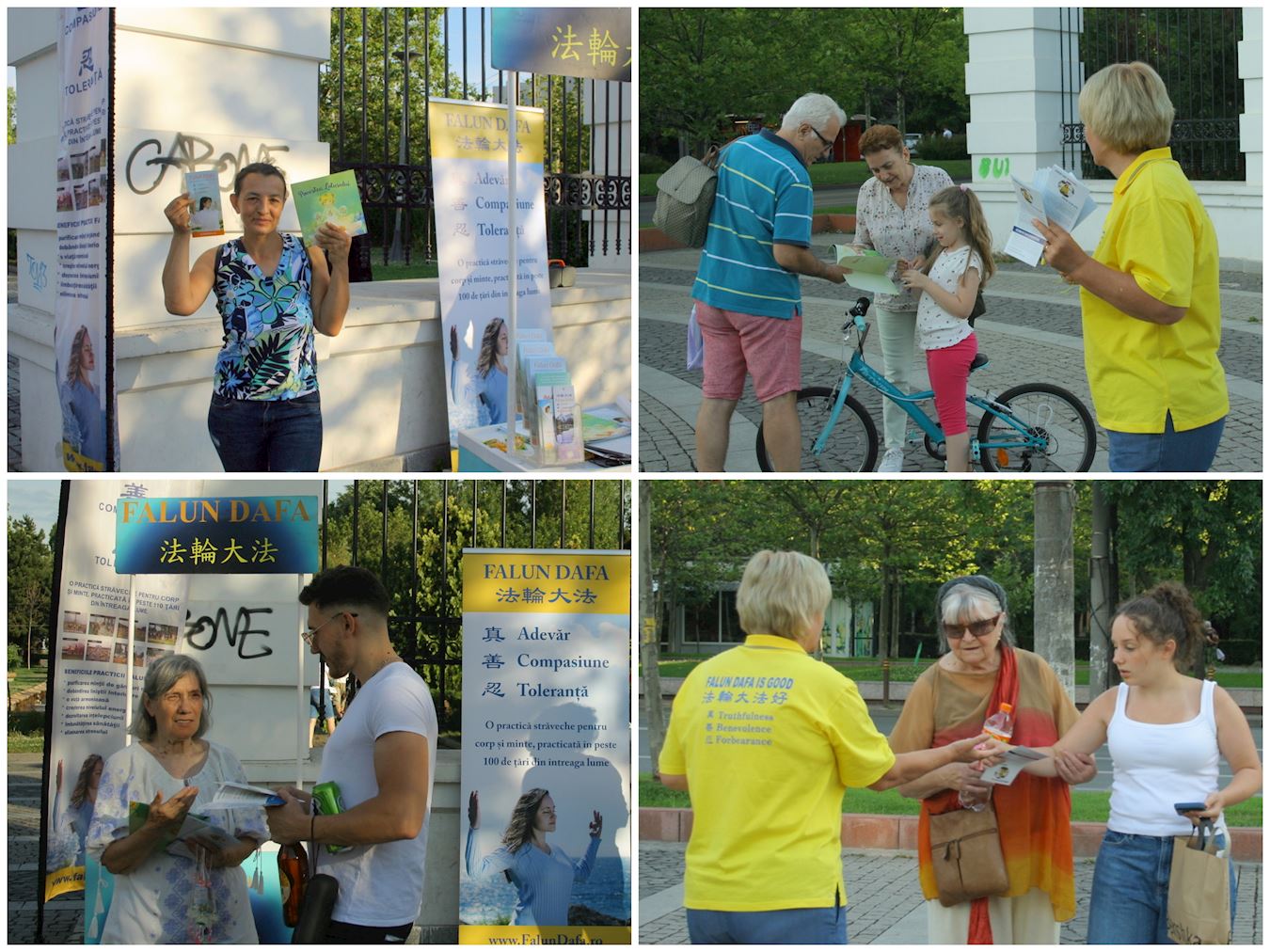 一对穿着得体的中国年轻夫妇带着一个大约五岁的男孩,在经过真相点时投来好奇的目光。当一位学员上前问他们,有没有听说过法轮功时,两人都表示听说过,但只知道中共的谎言宣传。这位学员给他们看真相传单,并以中共自编自导“天安门自焚”伪案栽赃嫁祸法轮功为例,告诉他们中共的欺骗手段。学员说:“法轮功是佛家上乘修炼大法,修炼者不可杀生,也不可自杀,怎么会去自焚呢?”这对夫妇立刻点头表示同意。进一步了解真相后,两人都用化名退出了党、团、队等中共相关组织。