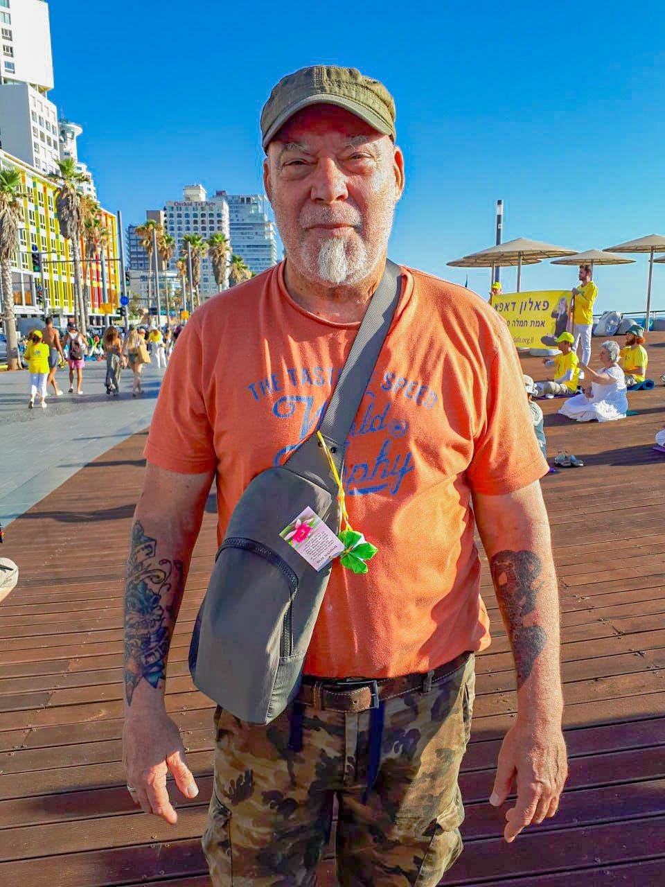 来自特拉维夫的尼尔(Nir)是一名滑板车租赁商,当天是他第一次听说法轮功。了解到中共侵犯人权的事实后,他为法轮功学员成为中共的迫害目标之一感到难过。