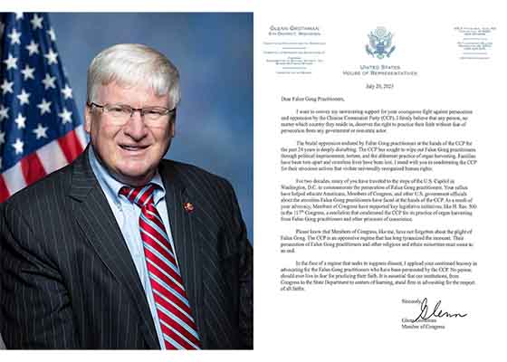 七月二十日,美国威斯康辛州第六选区国会议员格伦·格罗斯曼发来信函,谴责中共对法轮功学员的迫害。