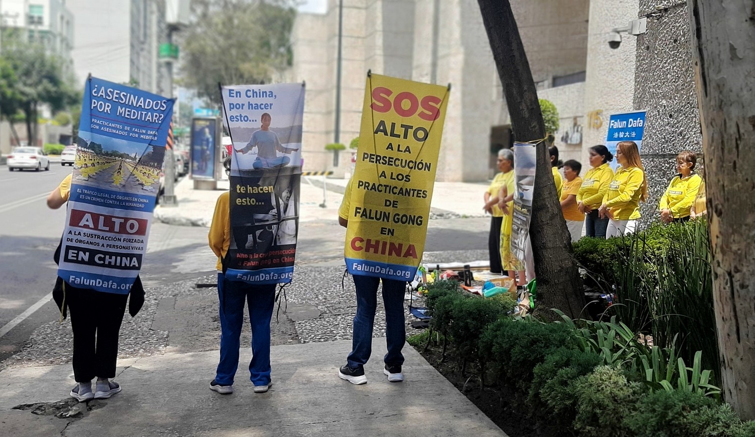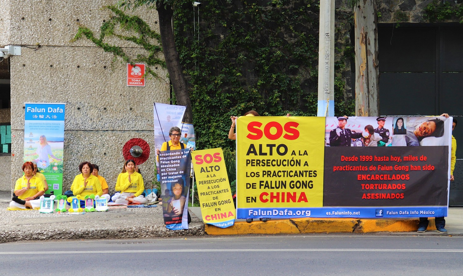 七月二十日和二十二日,在墨西哥首都墨西哥城的中共领事馆前和平请愿,揭露中共迫害法轮功学员的罪行,并向过往这里的市民及游客发送传单,让人们了解法轮功是什么以及中共迫害法轮功的事实。